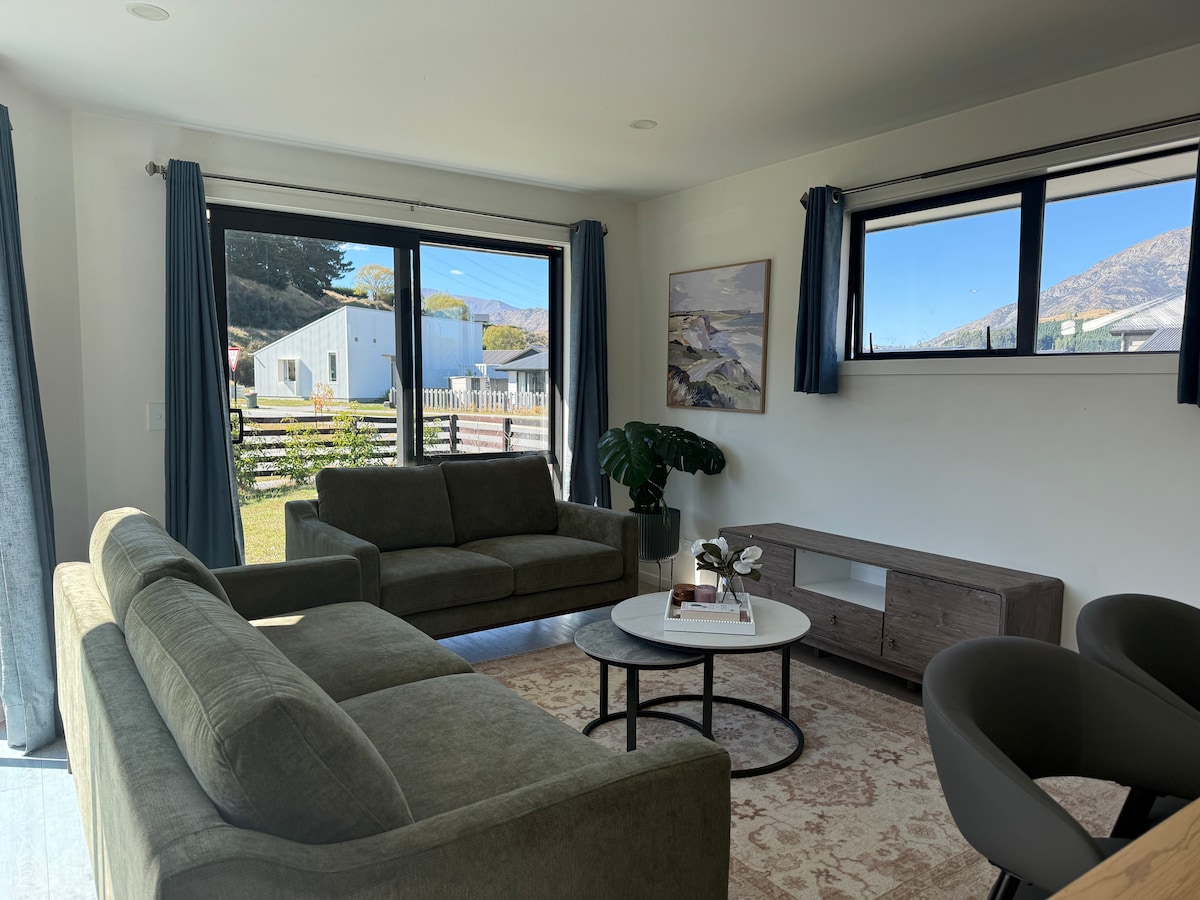 Set near the Clutha river & ski fields, Cardrona/Treble Cone - a tranquil haven awaits you, our brand new beautifully decorated and stylish, studio is perfect for all seasons, it boasts a new queen bed, sofa bed, ensuite, tea/ herbal tea/ coffee, tv, wifi, heat pump, air con, & inviting private deck to relax & unwind on. The studio is nestled behind our home in a peaceful established, private garden capturing the sun. Our studio has everything covered for your stay in Wanaka.