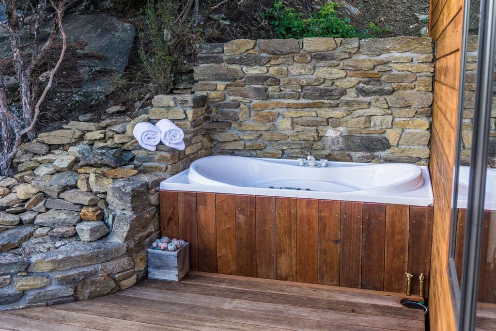 Nestled among native beech forest, our bespoke little cabin will take your breath away. Wake to birdsong, enjoy morning tea beside a Tui, and soak in the glorious outdoor bath while watching sunsets or the Aurora Australis over Bob’s Cove. Our cozy, small space is modern, memorable, and truly unique, it’s just 12 minutes from Queenstown and 30 from Glenorchy. Enjoy the buzz of town, then retreat to your private hideaway. Hiking and walking trails are right at your doorstep!