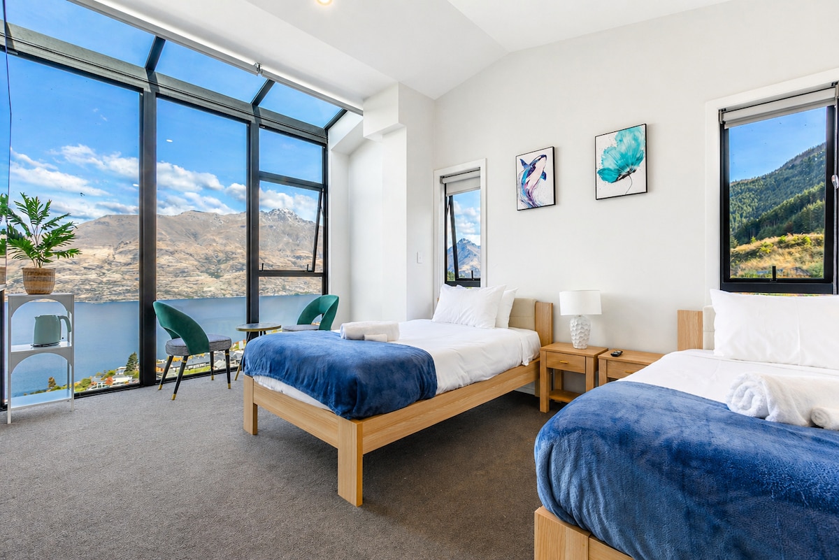 Luxurious, villa situated right on the waterfront with private lake access and fabulous 180 degree views. Kohanga’ is the Maori word for 'Nest'. This 4 bedroom home is fully equipped and designed to make the most of its sensational, unspoilt views of Lake Wakatipu and the Remarkable Mountains. It features large floor to ceiling windows, surrounding balcony and an outdoor area with BBQ, pizza oven, table & chairs, day bed and secluded hot tub.