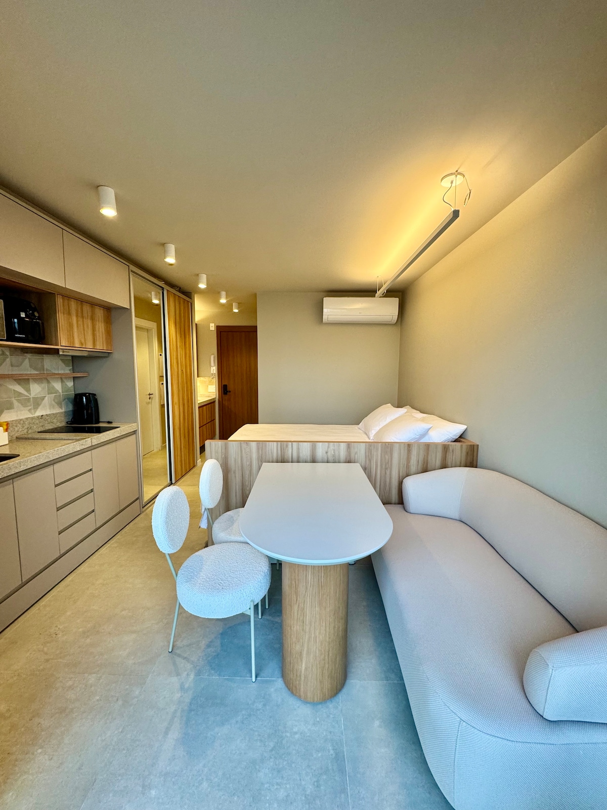 Anfitrião Superhost! Studio boutique no edifício Alive, no bairro Vitória — endereço mais nobre de Salvador. Desfrute piscina com borda infinita e vista incrível para a Baía de Todos os Santos. Moderno e finamente decorado, cama queen confortável, ar-condicionado, Wi-Fi 600 Mbps perfeito para trabalhar ou streaming e estacionamento grátis. A apenas 1,7 km da praia do Porto da Barra, perto de cafés, restaurantes e supermercado a 60m. Conforto, elegância e localização privilegiada em um só lugar.