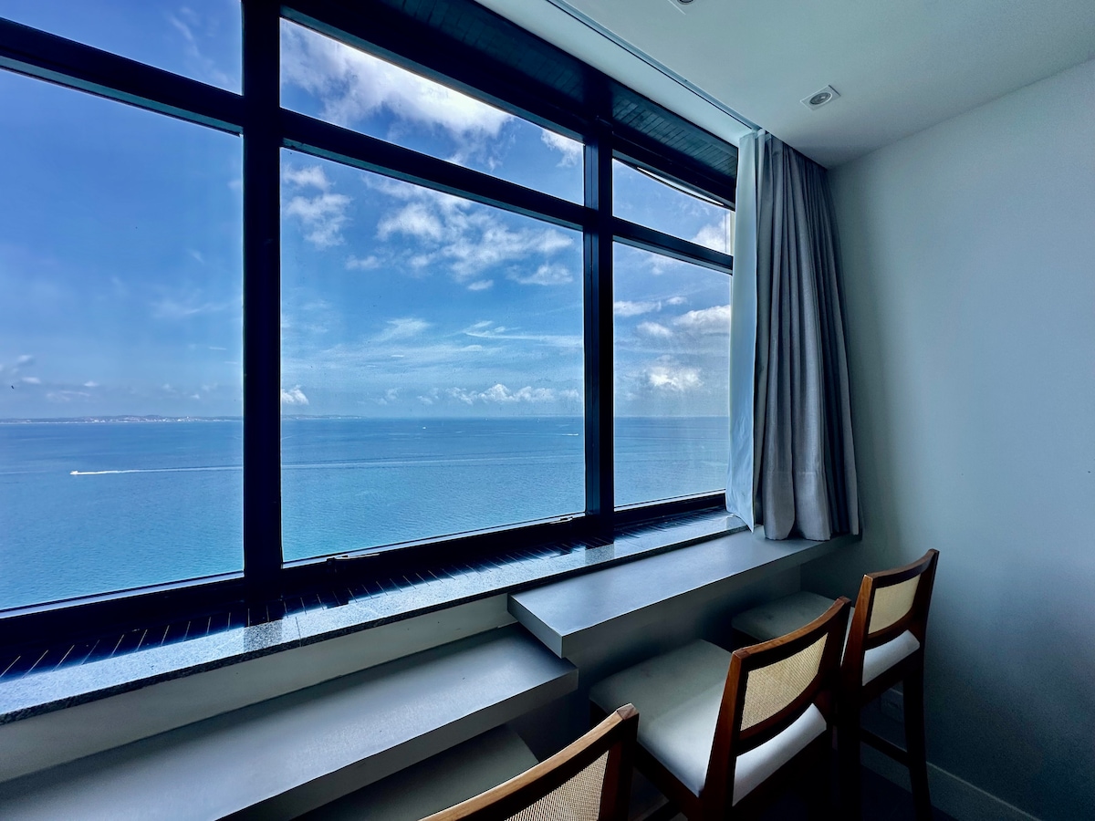 Studio moderno e aconchegante (36m²) com cama de casal, sofá-cama, smart TV, ar-condicionado, cozinha equipada, banheira e Wi-Fi rápido. Localizado no Corredor da Vitória, bairro mais nobre de Salvador, no Sol Victoria Marina (hotel 4 estrelas), com acesso ao píer privativo, com toboágua, além do restaurante Mahi Mahi, à beira-mar. Na rua tem opções de museus, mercados, cinema e academias. !Acesso ao píer gratuito apenas para hóspedes. !Apto com vista para o corredor da vitória.