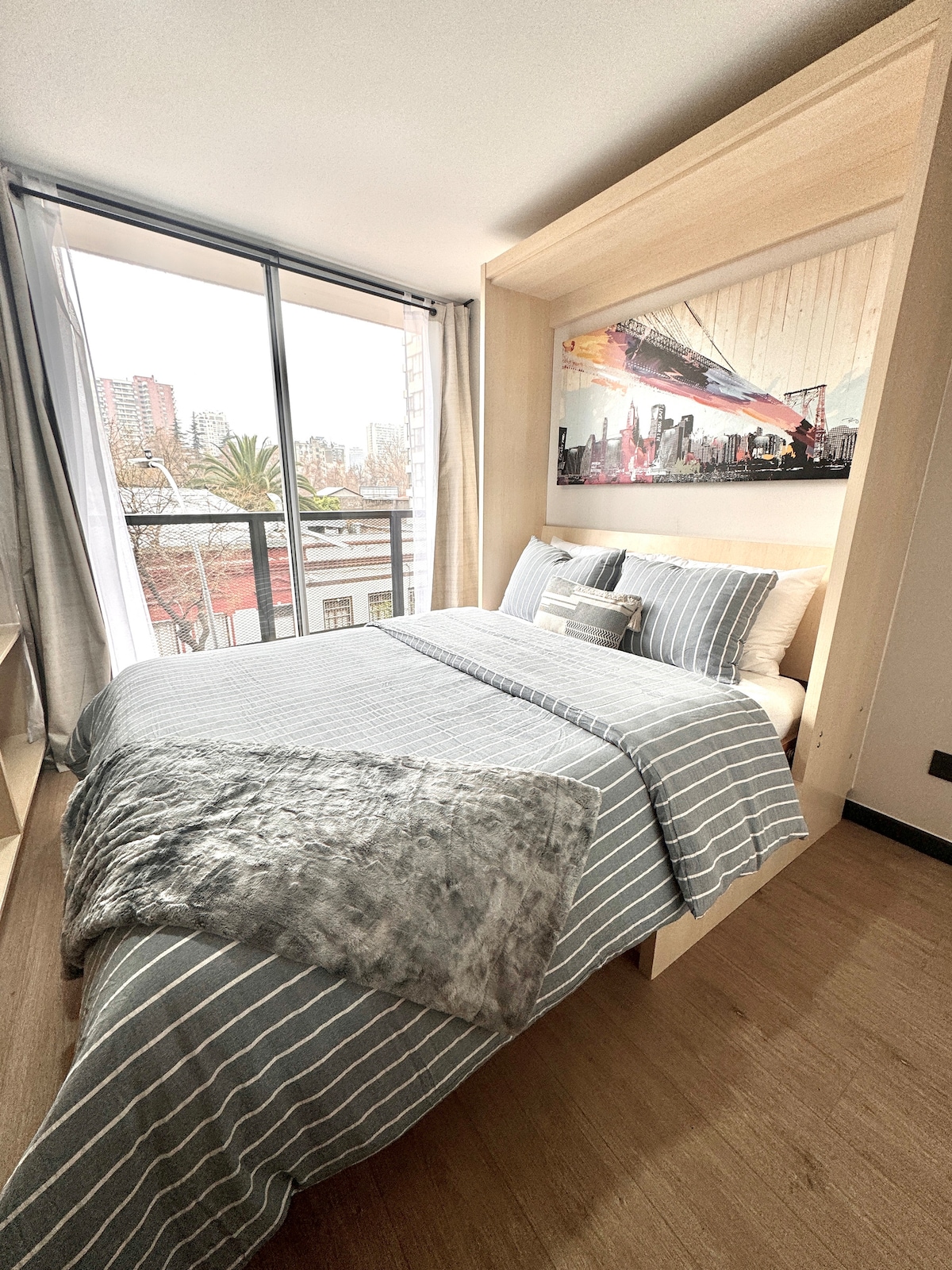 Relájate en esta escapada única y tranquila en el corazón de Santiago. Nuestro acogedor studio de un ambiente es un oasis inspirado en la vibrante ciudad de Nueva York, donde la elegancia urbana se fusiona con la comodidad y el estilo Disfruta de una ubicación privilegiada en el centro de la ciudad, con excelente conectividad de transporte público, incluyendo metro Toesca y Parque Almagro a pocos pasos. Nuestro studio es el refugio perfecto con internet de alta velocidad y aire acondicionado