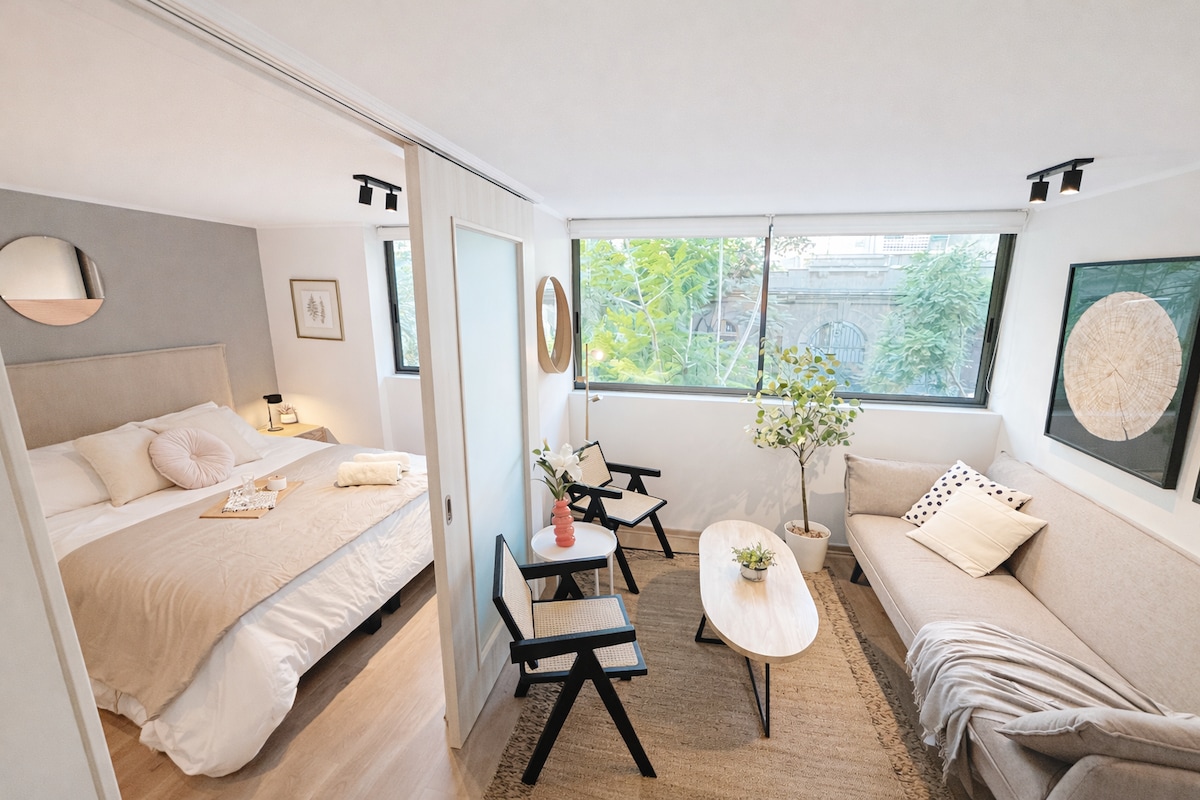 🛎️ Guest favorite. Just 2 minutes from the metro, in a new, modern, and quiet building. Discover the comfort of this fully equipped and stylishly decorated apartment. 📍Perfect for relaxing after exploring the city. Located in a peaceful building with excellent connectivity—just a 2-minute walk from Parque Almagro metro station. 🛌 Enjoy all the amenities designed to make your stay comfortable, practical, and cozy.