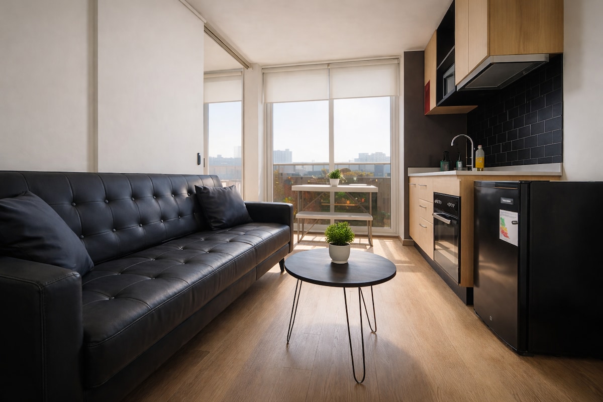 Moderno y acogedor departamento a 2 cuadras del Metro Parque Almagro. Ideal para viajeros y estudiantes, cerca de universidades, Parque Almagro, Barrio Lastarria, GAM, Museo de Bellas Artes, Cerro Santa Lucía, Plaza de Armas, Palacio de La Moneda y Biblioteca Nacional. WiFi rápido y excelente conexión al transporte. Vive Santiago con estilo.