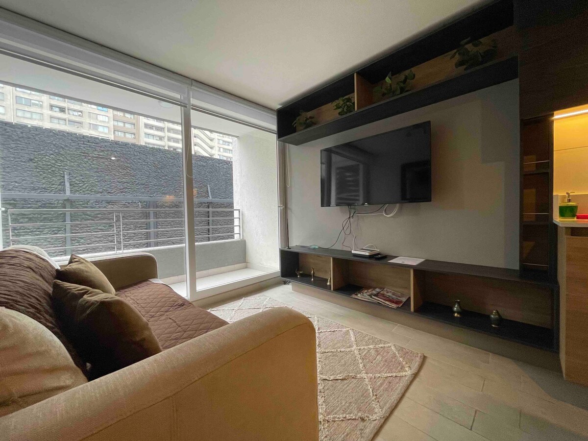 Enjoy a great experience in this central location. Modern and cozy apartment with a privileged location, in the gourmet and bohemian heart of Santiago de Chile "Barrio Lastarria". The neighborhood is a magical mix of history, culture, diversity, and tradition. It is characterized by its great architectural value and its attractive and varied cultural, gastronomic, and recreational offer. (restaurants, cafes, bars, theaters, museums, design galleries, etc).