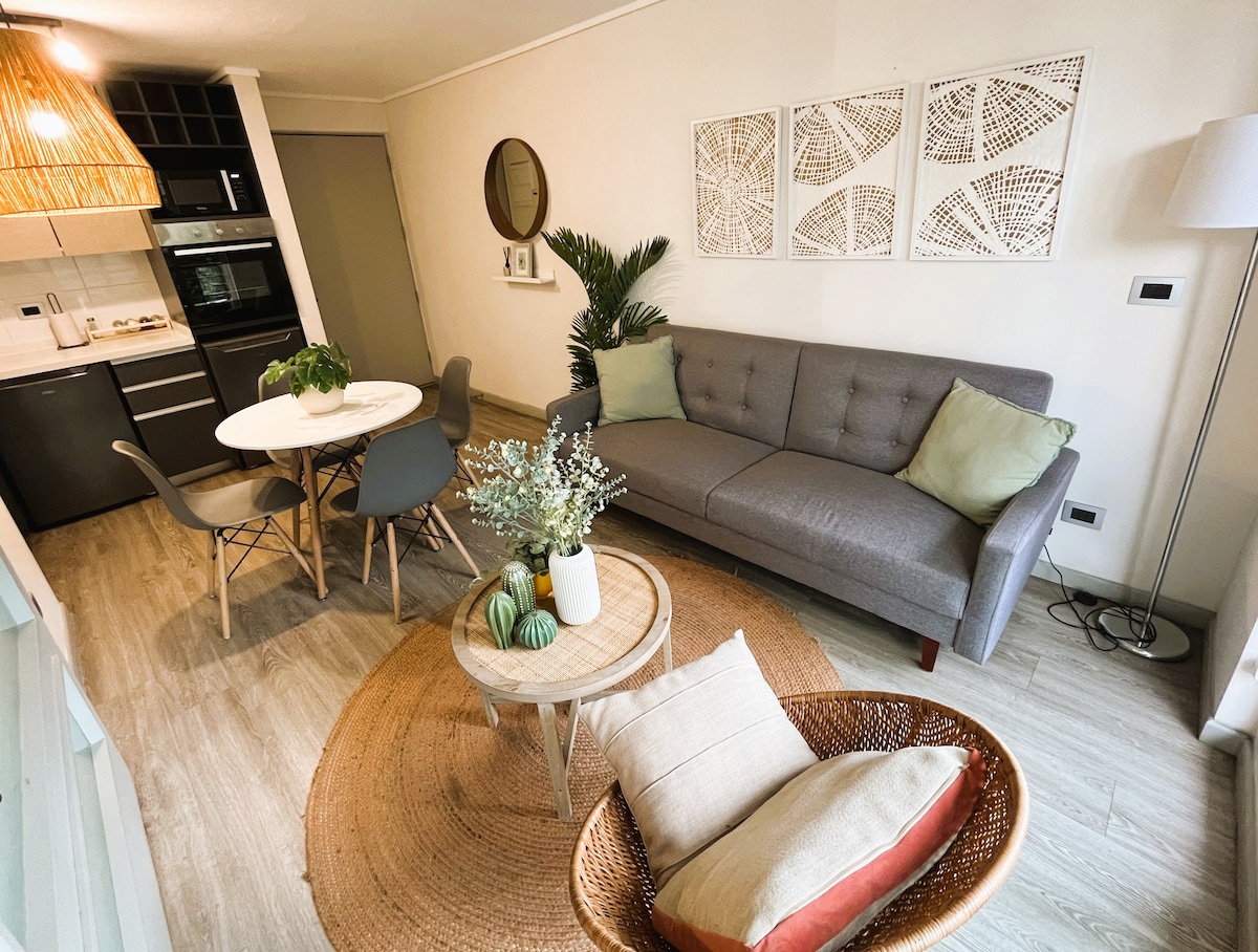 Loft apartment, located in the tourist sector called "Bellas Artes", close to Santa Lucia Hill, "Bellas Artes" Museum, Barrio Lastarria, Subway and many restaurants. Technological department, control the lights with the voice, ask "Alexa, how the time will be", block the door with your mobile phone. Very well decorated, ideal to enjoy Santiago, arrive and rest after a day full of activities. The best apartment to rest and live the "Santiaguina" life.