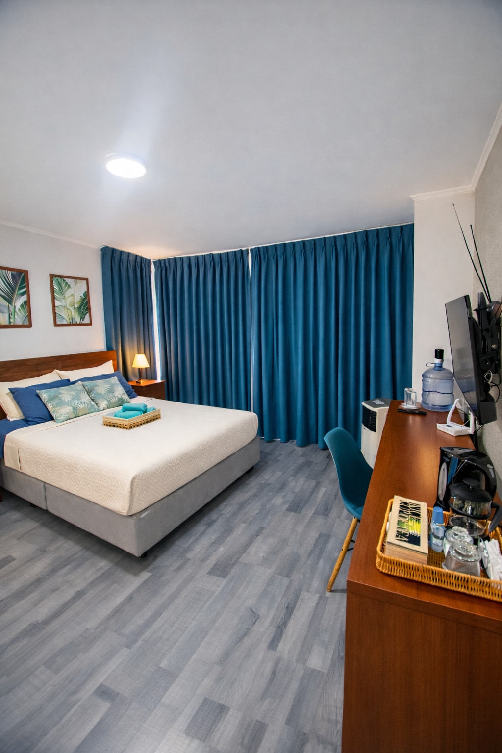 Cozily designed and functional, this 37 m² studio offers a unique open-plan space with 1 bedroom featuring a King-size bed and closet, 1 fully equipped kitchen, 1 full bathroom, 1 living area, Smart TV, Wi-Fi, and 1 parking space. Daily housekeeping and a 24-hour front desk are included, just like a hotel. You’ll have access to shared spaces such as a gym, coworking area, restaurant and panoramic rooftop. Located in El Golf, just steps from the metro, restaurants, shops, and business centers.