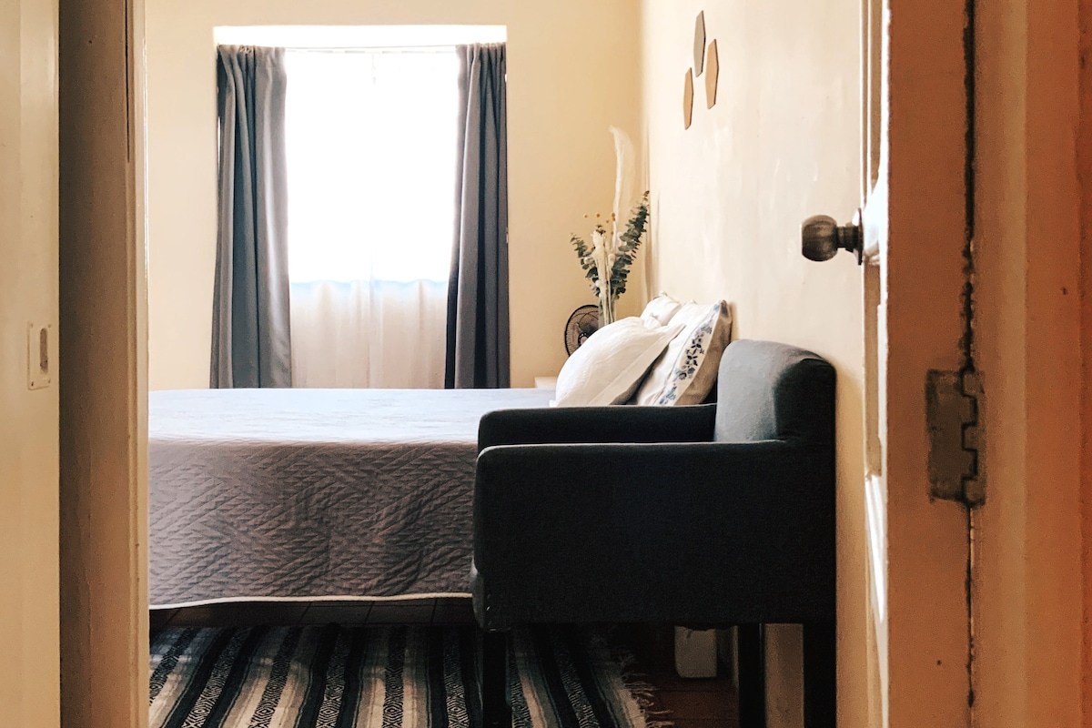 MORADA LIVING Perfecto para amigos, compañeros de trabajo o viajeros que prefieren dormir por separado, este estudio ofrece dos camas individuales, sofá cama, cocina completa, Smart TV y escritorio. Su diseño moderno lo hace práctico y cómodo para estancias cortas o largas. El edificio cuenta con áreas comunes agradables y se encuentra en una ubicación estratégica: cerca del Centro Histórico, Colonia Americana y Parque Agua Azul. Comodidad, flexibilidad y ubicación en un solo lugar.