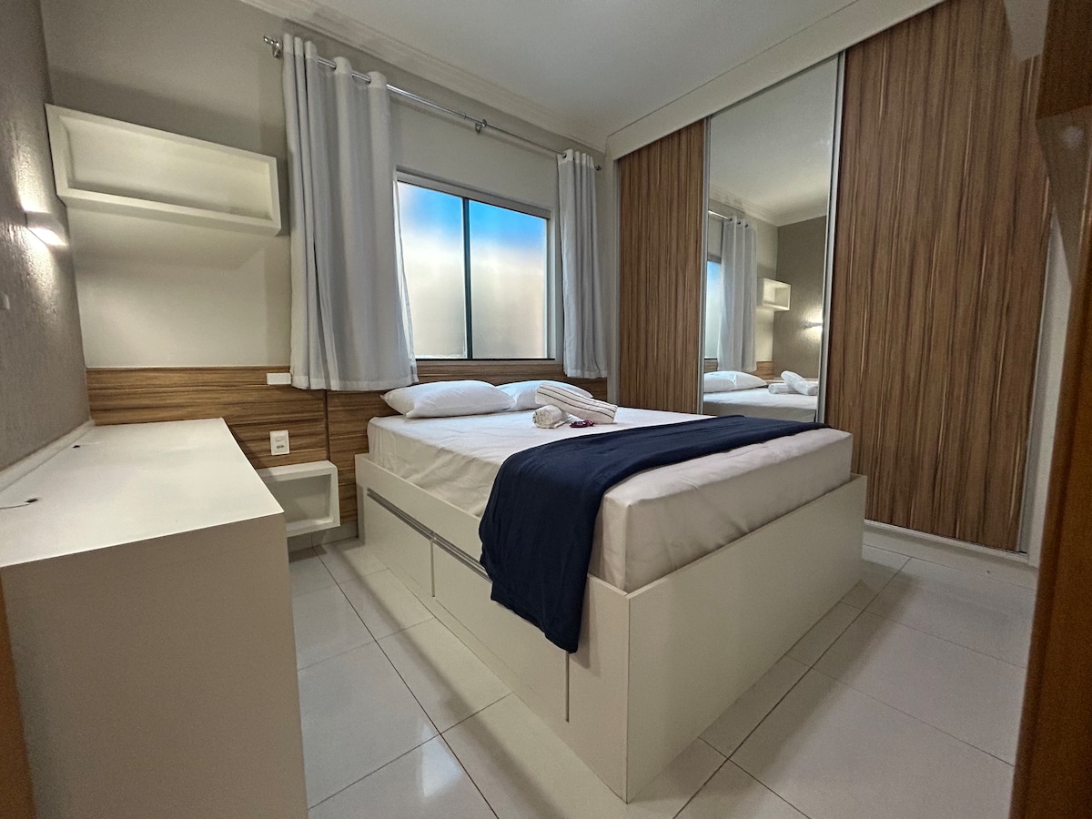 Seja à lazer ou à negócios, relaxe neste espaço muito acolhedor e cheio de estilo! Apto novinho e planejado para oferecer a melhor estada em Uberlândia. Estamos localizados na principal região hoteleira da cidade, à 300 metros do Center Shopping e próximo às 2 principais avenidas da cidade. O acesso ao aeroporto é muito fácil (6,5 km) , assim como atrativos turísticos e órgãos públicos . A região é muito segura e possui supermercados, bancos, farmácias, restaurantes, lojas e tudo que precisar!