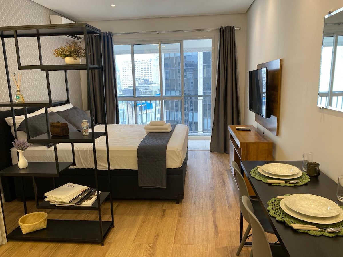 Studio novo na Av. Brigadeiro Luis Antonio, 499 ao lado do teatro Renaut, Centro de São Paulo. Próximo aos metrôs Sé e Liberdade, com grande variedade de pontos turísticos que você pode ir a pé. Espaço lindo decorado, wifi e local para trabalhar, sossegado para descansar, cama queen e bicama, TV, geladeira e frigobar, cozinha equipada e secador de cabelo. roupa de cama e banho, sabonete. aproveite!