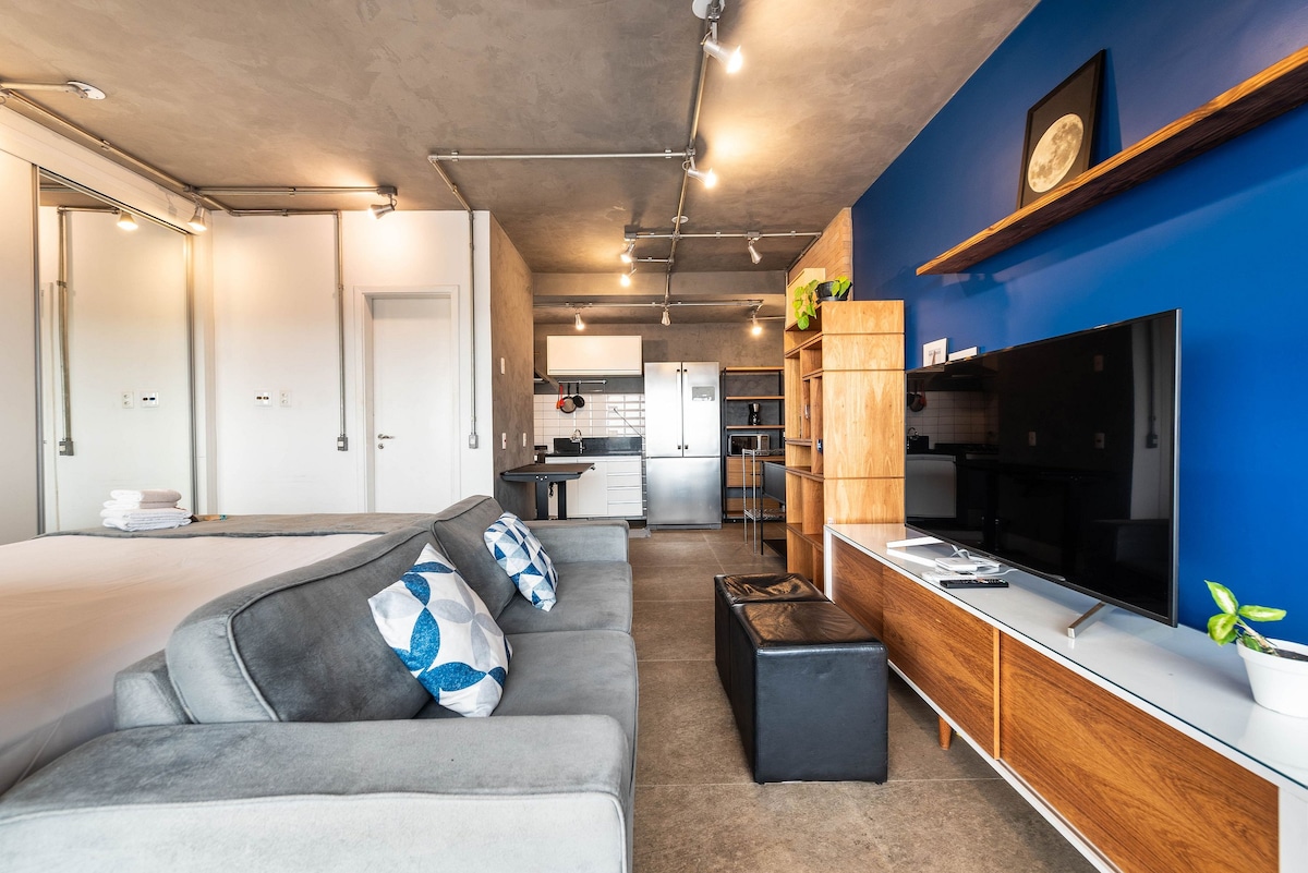 Studio design situado em uma das melhores localizações turísticas de São Paulo, no eixo Centro-Paulista, bem ao lado do Shopping Frei Caneca, a poucos passos de hospitais de referência como Sírio Libanês e Nove de Julho, e a poucas quadras da Av. Paulista e do metrô Higienopólis-Mackenzie. Desfrute de uma estadia confortável em um ambiente elegante, com tudo o que você precisa ao seu redor. Projeto de arquitetura: @datta.arq Fotos: @emytsutsumi