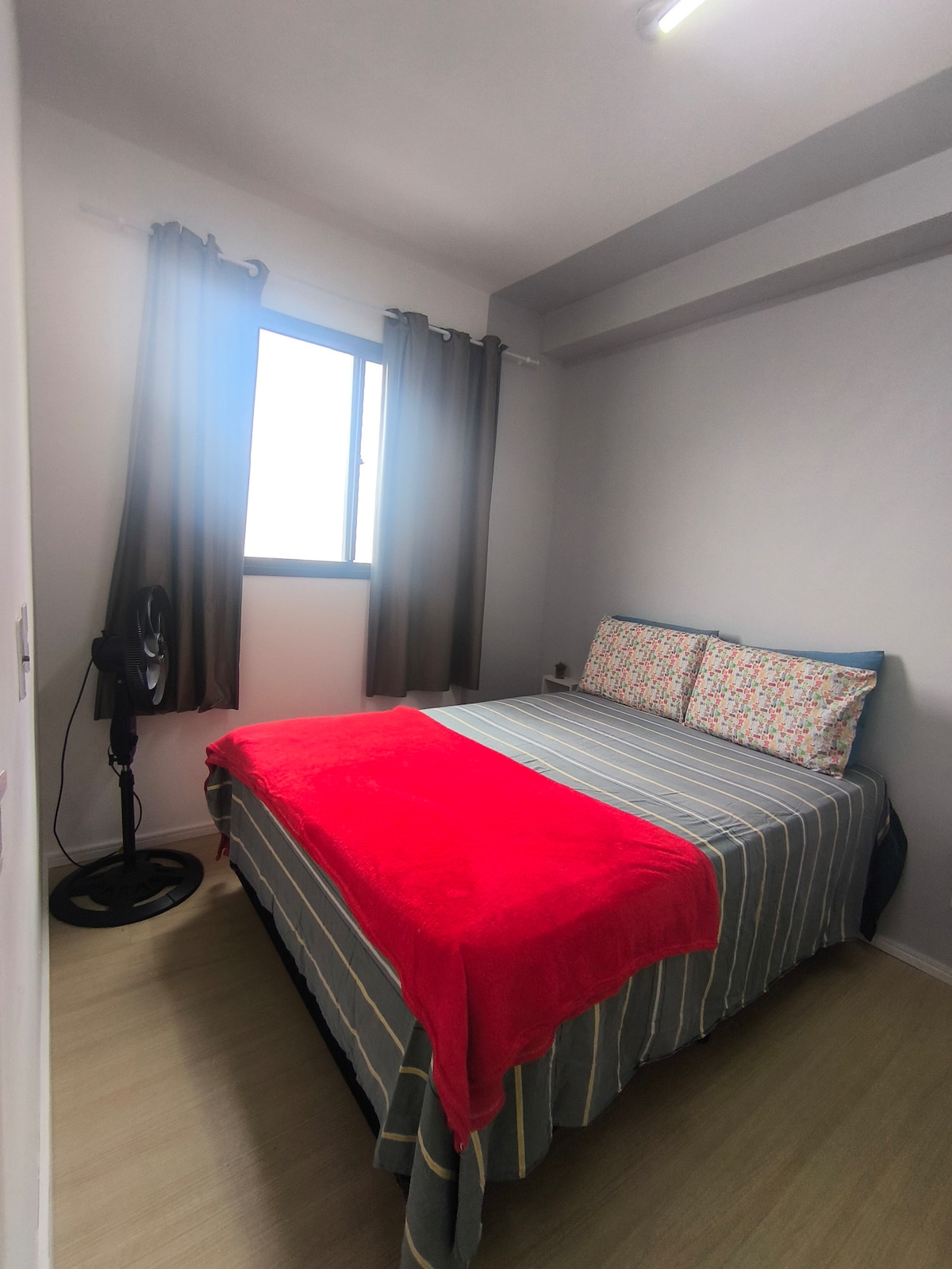 Apto completo, localizado na bela vista, região mais segura do centro de SP. Num predio novo, com area de descanso e vista 360º no Rooftop, alem de uma grande piscina no 3º andar. O apto é muito aconchegante, possuindo wifi e ar condicionado. Fica próximo da rua 25 de março, da avenida paulista e do bairro da liberdade. Muito bem localizado e seguro. A cozinha é compacta e completa, com utensílios domesticos, sanduicheira, cafeteira, microondas, alem de ferro de passar e secador de cabelo.
