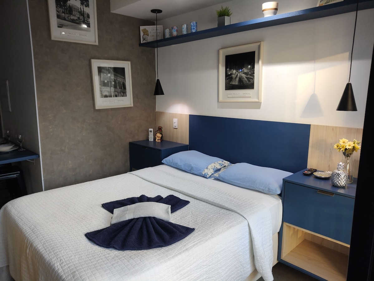 Bem-vindo ao nosso oásis urbano no coração da cidade! Nosso espaço combina modernidade e conforto, oferecendo uma estadia tranquila e elegante. Nosso estúdio é perfeito para relaxar, a cozinha é totalmente equipada, oferecemos comodidades como Wi-Fi, AR CONDICIONADO e serviço de Streaming na TV. Localizado perto do metrô, restaurantes e pontos turísticos do bairro da Liberdade, é o refúgio perfeito para explorar a cidade. Nossa equipe está disponível para oferecer informações e assistência.