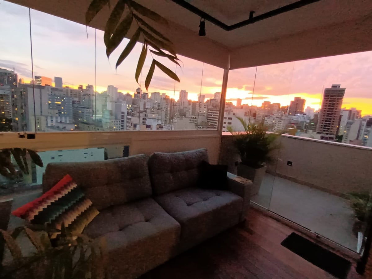 Penthouse with balcony, loft type. Ideal for enjoying or working. Well ventilated and quiet. Cozy, beautiful, with stunning views from the 19th floor. Well-appointed: living room (air conditioning, WI-FI, smart TV 49 , large table), balcony (portable barbecue, coffee table), full kitchen and laundry. Charming, leafy and lively neighborhood, with a wide variety of shops, services and leisure. Santa Cecília Metro two blocks away. Concierge and garage with valet 24 hrs.