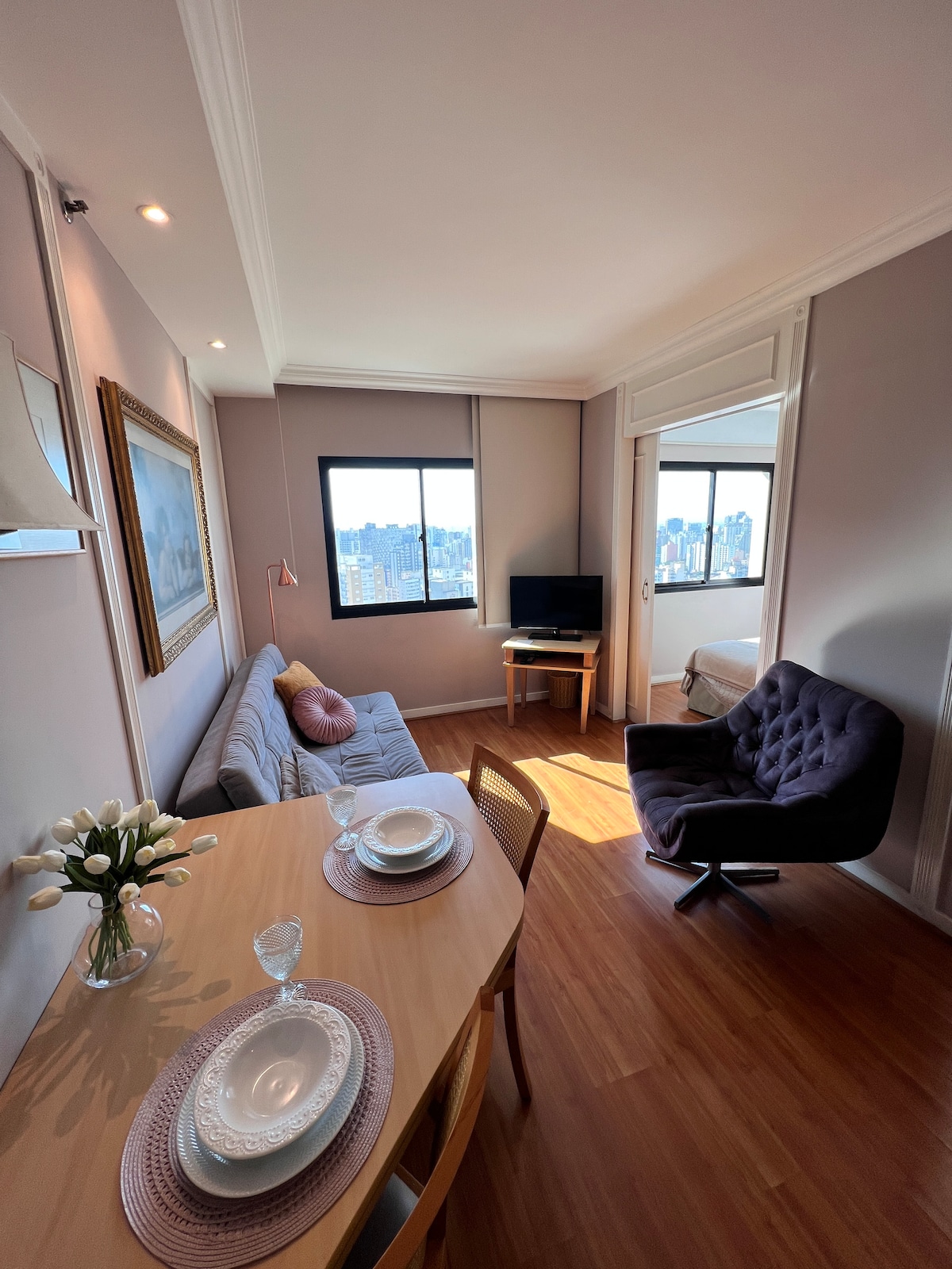 Feel at home at the AltaVista Apartment! Enjoy an incredible 180° view from the 21st floor and a prime location. Located in the heart of the city, you’ll be just steps away from the Higienópolis-Mackenzie station, Paulista Avenue, and the vibrant Augusta and Frei Caneca streets. The building features a suspended Olympic pool on the 15th floor, a gym, dry and steam saunas, a parking spot, shared laundry facilities, and a garden.