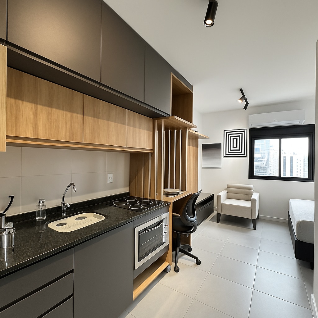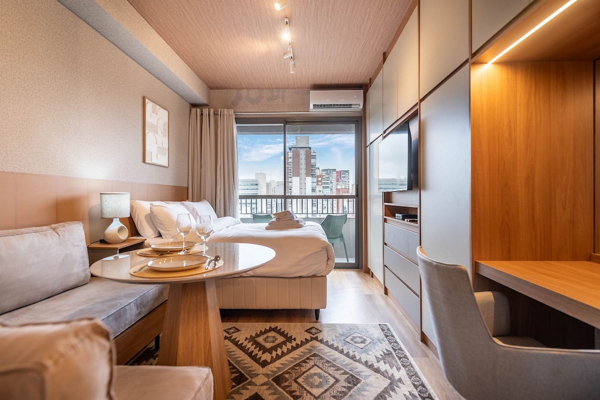 Studio Moderno no Itaim Bibi 45m² Localizado no coração do Itaim Bibi uma das regiões mais nobres da cidade. O espaço combina conforto, praticidade e sofisticação, ideal para estadias de lazer ou trabalho. O apartamento conta com: Cozinha completa, Máquina de café em cápsulas, Roupas de cama e toalhas premium. Localização privilegiada a poucos minutos das Av. Faria Lima e Av. JK, com fácil acesso a excelentes restaurantes renomados da cidade, Shop. de alto padrão como o JK Iguatemi e Parques.