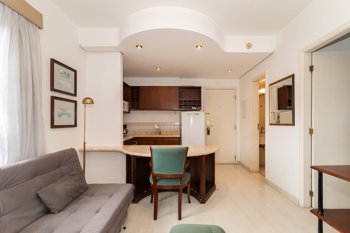 Flat no hotel Radisson Vila Olímpia, em frente ao Shopping e cercado pelos principais polos corporativos, gastronômicos e de compras da cidade. A poucos passos da Faria Lima, shoppings Vila Olímpia e JK Iguatemi; Parque do Povo, e fácil acesso ao aeroporto de Congonhas. O flat oferece conforto e funcionalidade para você se sentir em casa e poder usufruir de toda estrutura do hotel como piscina interna aquecida, piscina externa com cascata, academia, sauna, lounge bar e restaurante 24h.