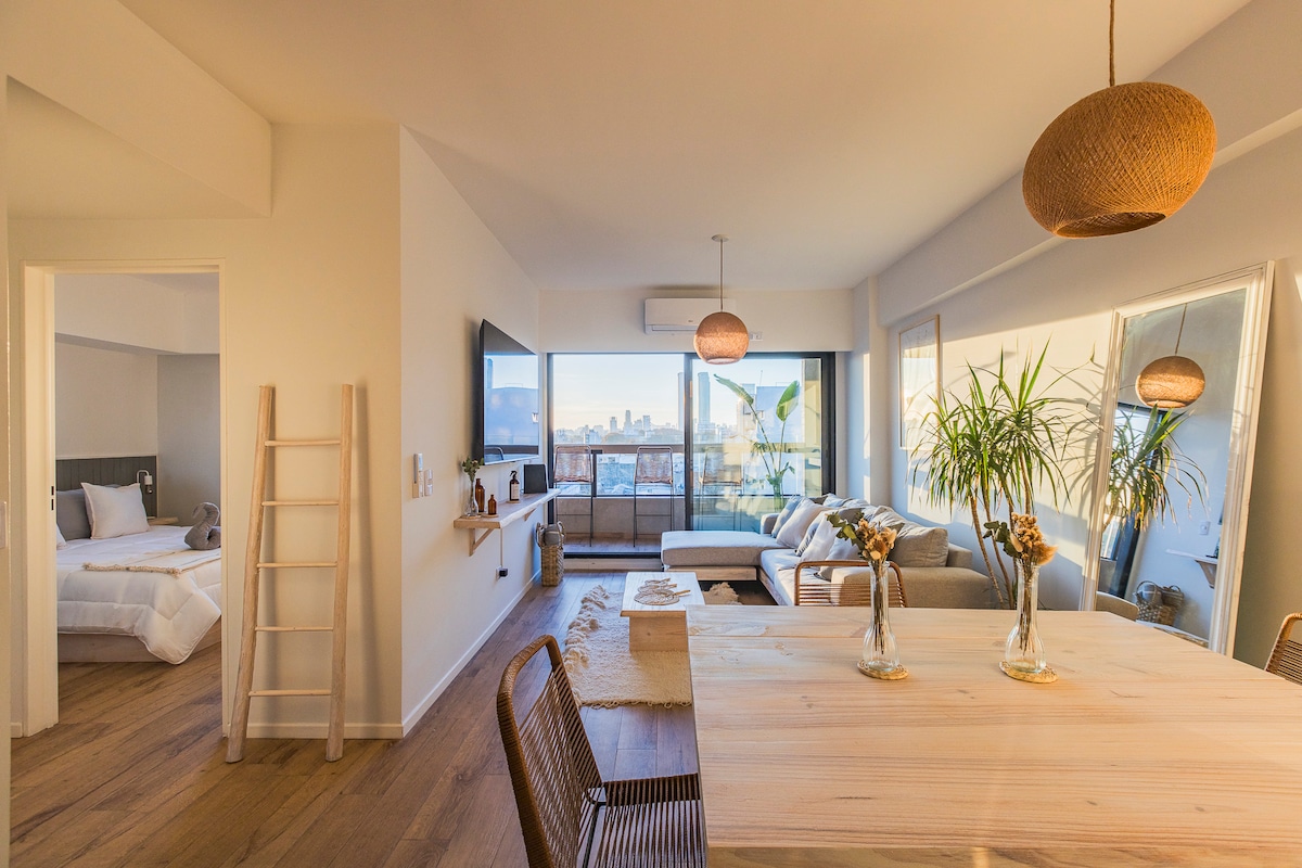 Espectacular departamento, amplio y luminoso con terraza, piscina y parrilla privados. Totalmente equipado y decorado para que la estadia sea lo más placentera posible. El alojamiento se encuentra en el último piso de un edificio moderno ubicado en Palermo Soho, una de las zonas más seguras y con gran atractivo gastronómico y cultural. Ideal para parejas que buscan tranquilidad, un descanso confortable y disfrutar de una increíble terraza con una vista preciosa.