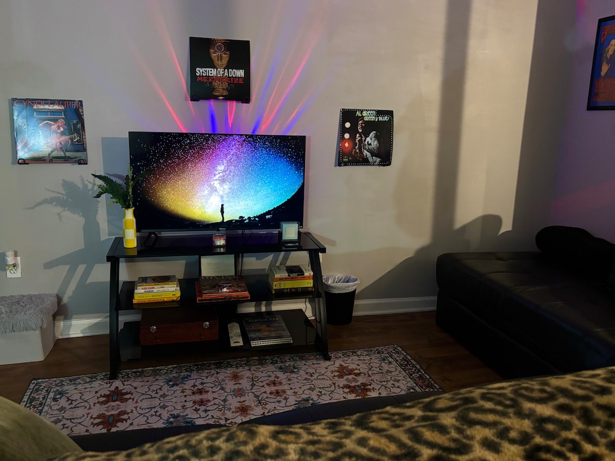 A magical getaway above a craft cocktail bar where spells meet spirits. This spacious two-floor retreat sleeps up to 5 guests, perfect for small groups or a girls’ weekend. Enjoy a private bar, two cozy living rooms, and a rooftop deck with skyline views. Nestled in vibrant Hamtramck, just a quick Uber to downtown Detroit. Sip cocktails downstairs, then bring the enchantment back to your space—the night is yours to create, explore, and indulge! *Decor updates by 10/1/25. Photos coming soon!*
