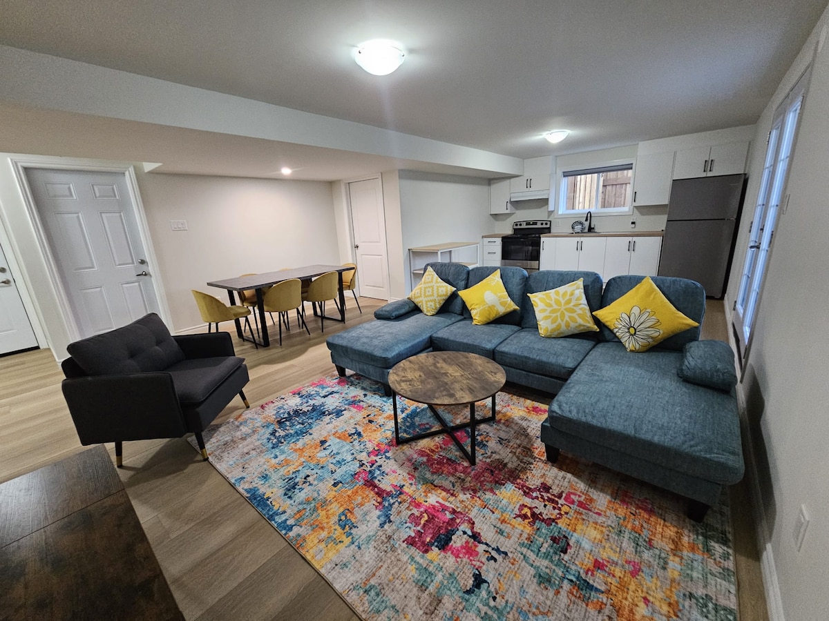 Welcome to our 2 Bed, 1 Bath Modern Luxurious Basement apartment in Lakeshore , featuring: ✓ Modern design with an open-concept layout ✓ Fully equipped kitchen ✓ Cozy family room with a large flat-screen TV ✓ High-speed internet ✓ Convenient location, safe neighborhood, easy access to major highways ✓ Comfortable bedrooms with high-quality linens for a restful night's sleep ✓ Free parking for 2 Cars