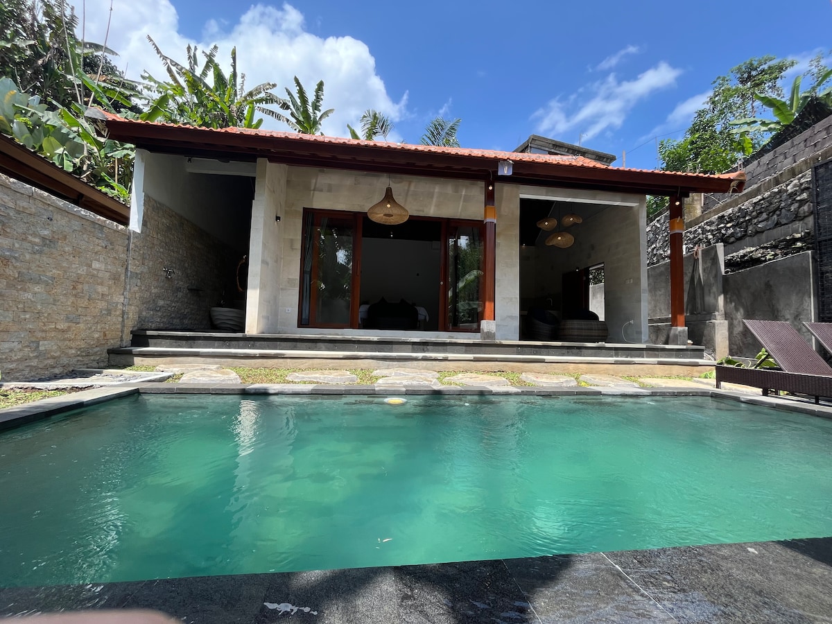 Private one bedroom villa with private view,where you can see nice view from the bathroom,bedroom and from the kitchen,the kitchen with full equipment ready to cook,walking distance to the waterfall,located in nature and nice vilage in bangli,fresh air and less polution,super nice view, Enjoy complimentary soft drinks, fresh eggs, instant noodles, coffee, and tea during your stay.