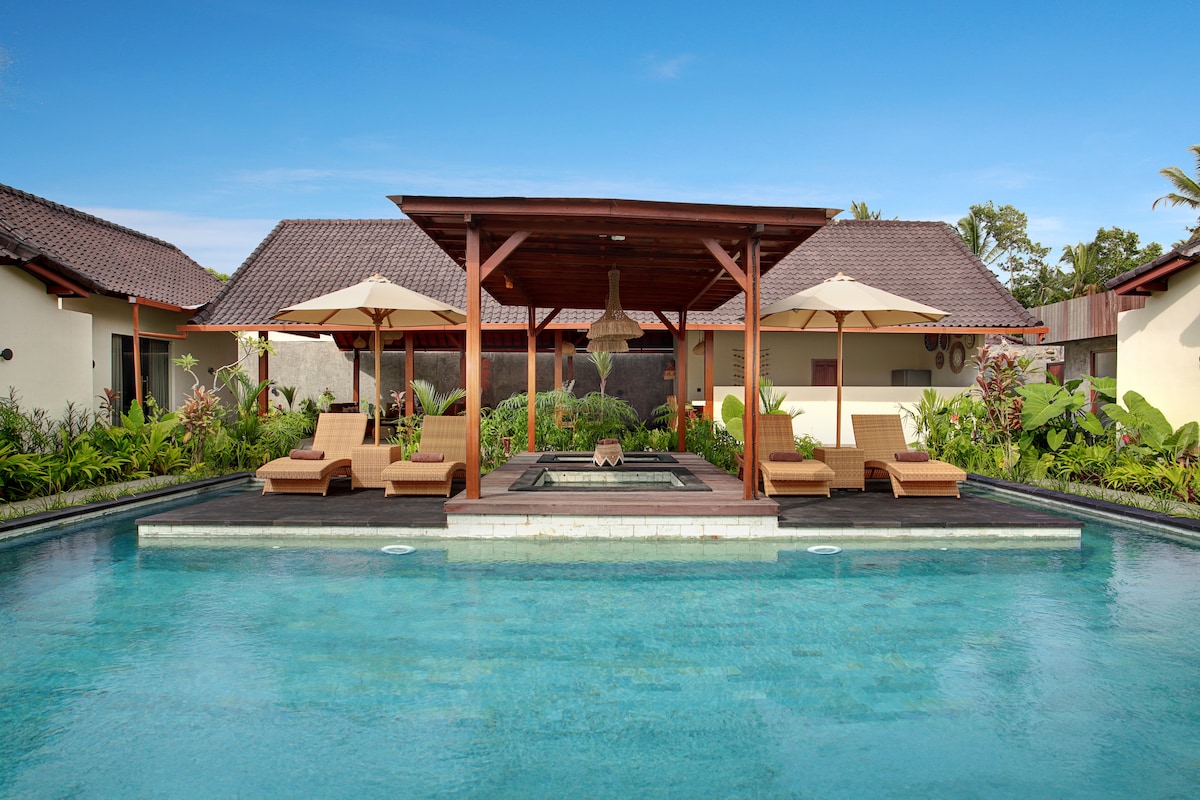 Much more than a villa, this is a transformative WELLNESS ESCAPE designed for travelers seeking deep relaxation and an immersion into the serene beauty of Ubud. Step away from the crowds and discover a private sanctuary that rivals Bali’s best resorts. We offer unparalleled private spa amenities right in your villa: drift between the steam room, the outdoor hot tub, and the invigorating cold plunge pool, or float the day away in our massive swimming pool overlooking the emerald rice fields.