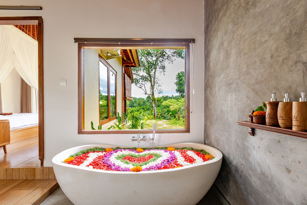 This Villa is a perfect as a combination between Balinese-Tropical-Minimalist concept, dedicated for couple /honeymooner or solo traveler who seek for romantic and relaxing place to stay in Ubud because it is like a place in a hidden garden and hideaway from the hustle and bustle of town, it has an Ace-location which close to most must visited places in Ubud, 5 minutes walking distance to Ubud main streets where most shop, cafe, restaurant are, close to Monkey forest, Ubud market and palace.