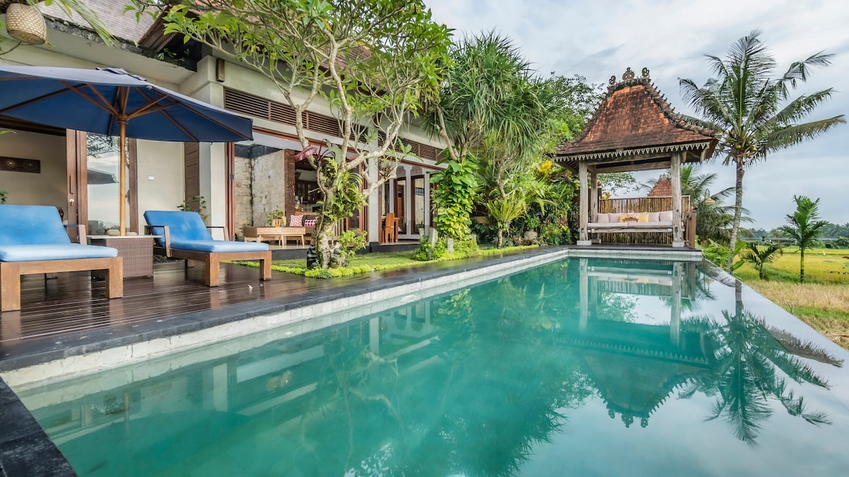Ana Private Villa offers private swimming pool and outstanding rice fields view. Featuring luxurious bedding, private kitchen including all the utensils, ensuite bathrooms with terazzo polish to finish the space perfectly. Located it's just about 10 minutes drive (approximately 5KM) from Ubud centre which is the perfect distance out of town to find peace yet still access all of Ubud's amenities.