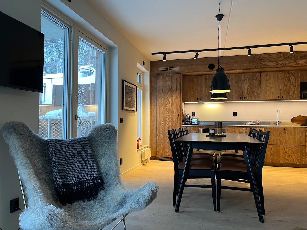 Elegant och fräsch lägenhet i Tegefjäll, Åre. Med gångavstånd till pist och restaurang så har lägenheten den perfekta kombinationen av närhet till aktiviteter samtidigt som avkoppling. Stort och modernt kök med stilrena vitvaror. Mycket trevlig lägenhet för paret som ska upp och åka skidor eller för den som söker avkoppling i lugna Tegefjäll. Lägenheten inkluderar: kaffebryggare Torkskåp Wifi Diskmaskin Tvättmaskin med inbyggd torktumlare Skidförvaring Klädkammare/arbetsyta