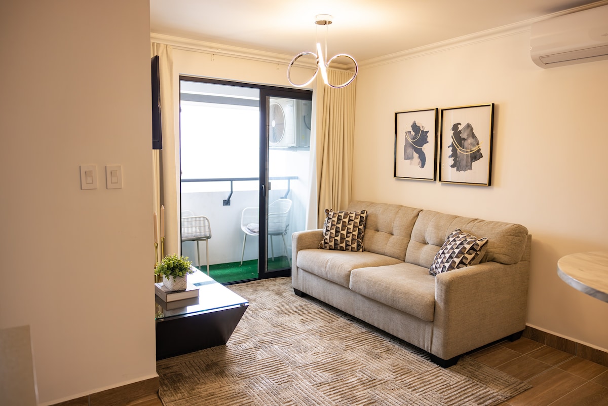 📍 Suite moderna en Paseo Los Próceres, a solo 3 min caminando de la nueva Embajada Americana y junto al Hotel Hyatt. 🛒 Todo a pie: supermercado, centro comercial, restaurantes, bares, cafés, cine, bancos, salón de belleza y barbería. 🔐 Seguridad 24/7. 🛋 Finamente amueblada, cómoda y céntrica, con todas las facilidades para una estadía segura y práctica.