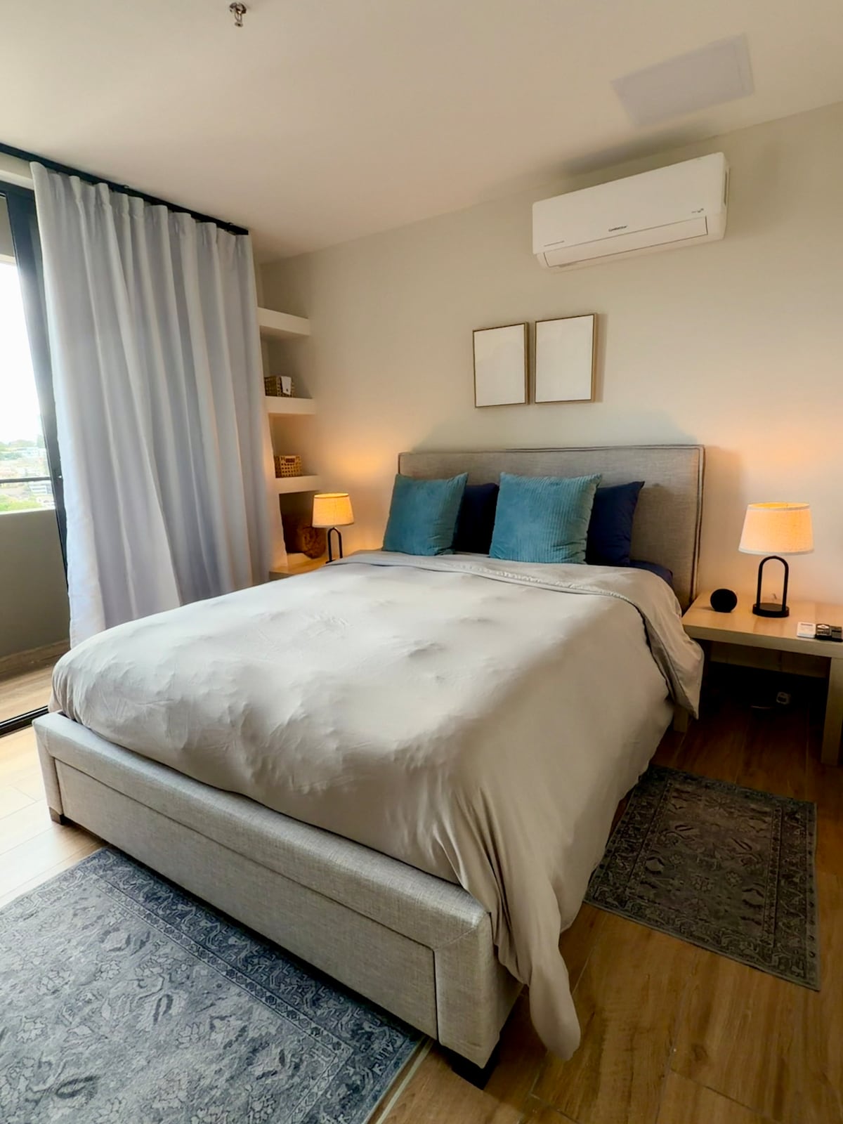 Descubre nuestro lujoso apartamento en Torre Astria, ideal para dos personas. Cuenta con 1 habitación, 1 baño privado, aire acondicionado, y cocina remodelada. Perfecto para trabajo remoto con un escritorio disponible. Disfruta de vistas panorámicas desde el balcón y estacionamiento privado incluido. Amenidades como lo son la piscina y el gimnasio son exclusivas para huéspedes de larga estadías(mínimo 8 días).
