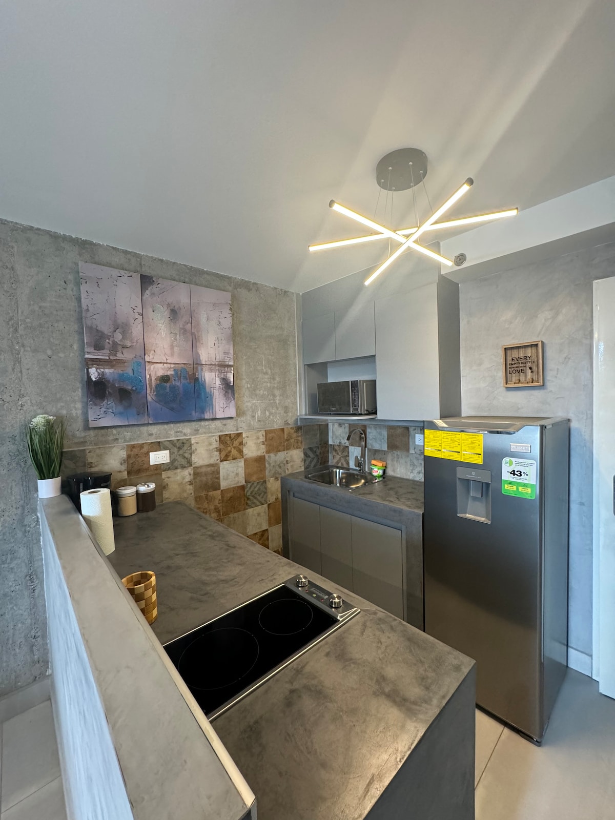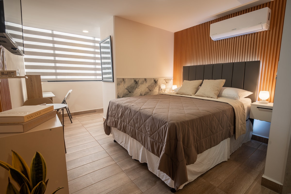 Disfruta una estadía cómoda, moderna y bien ubicada en este monoambiente dentro del exclusivo Ecodistrito de Tegucigalpa. Ideal para viajeros solos o parejas que buscan tranquilidad, seguridad y fácil acceso a los principales puntos de la ciudad. El espacio está diseñado para que te sientas como en casa: ✔ Cama cómoda y ambiente acogedor ✔ Aire acondicionado y Wi-Fi rápido ✔ Cocina equipada para estancias cortas o largas ✔ Check-in autónomo con código (sin llaves) ✔ Estacionamiento incluido