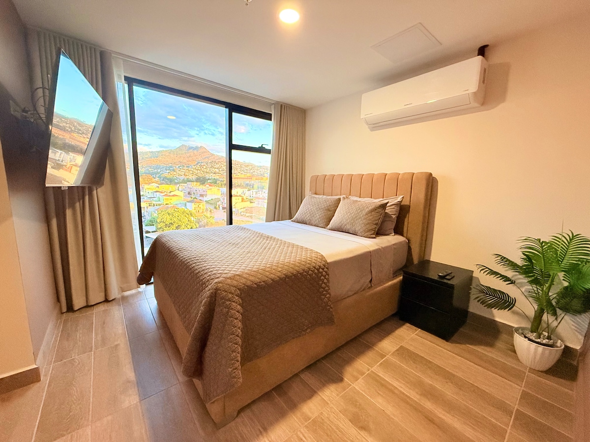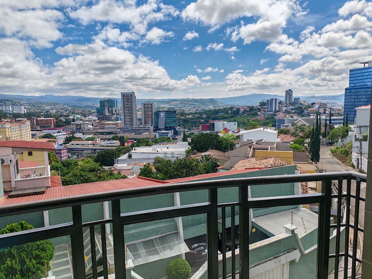 Amplio apartamento ubicado en la zona más exclusiva de Tegucigalpa con vista panorámica a la ciudad. Está cerca de todo lo que necesitas. Malls, restaurantes, bars, coffee shops, Centro Cívico, Embajada Americana, hospitales, bancos y farmacias. Si vienes por trabajo, negocio o vacaciones, éste apartamento es tu mejor opción