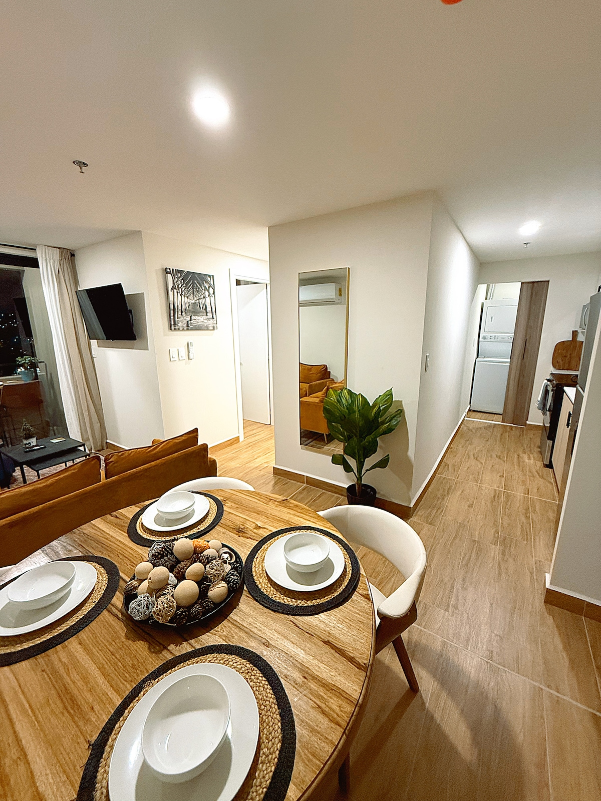 Disfruta tu estadía en EcoDistrito 307, sobre el Anillo Periférico y frente a EcoPlaza (comercios, restaurantes y supermercado). Apto moderno con A/C, WiFi, Netflix, Amazon Prime y HBO Max, parqueo privado y vista a la Basílica de Suyapa. Ideal para 2 adultos y 1 niño/a. Gimnasio 🏋️, cancha de pickleball 🏓, kioskos, área de parrilla 🔥 (costo extra), sala de juntas y lavandería. 📍 A 10 min de Multiplaza, 25 min de Santa Lucía y 35 min de Valle de Ángeles. ¡Comodidad, ubicación y estilo!