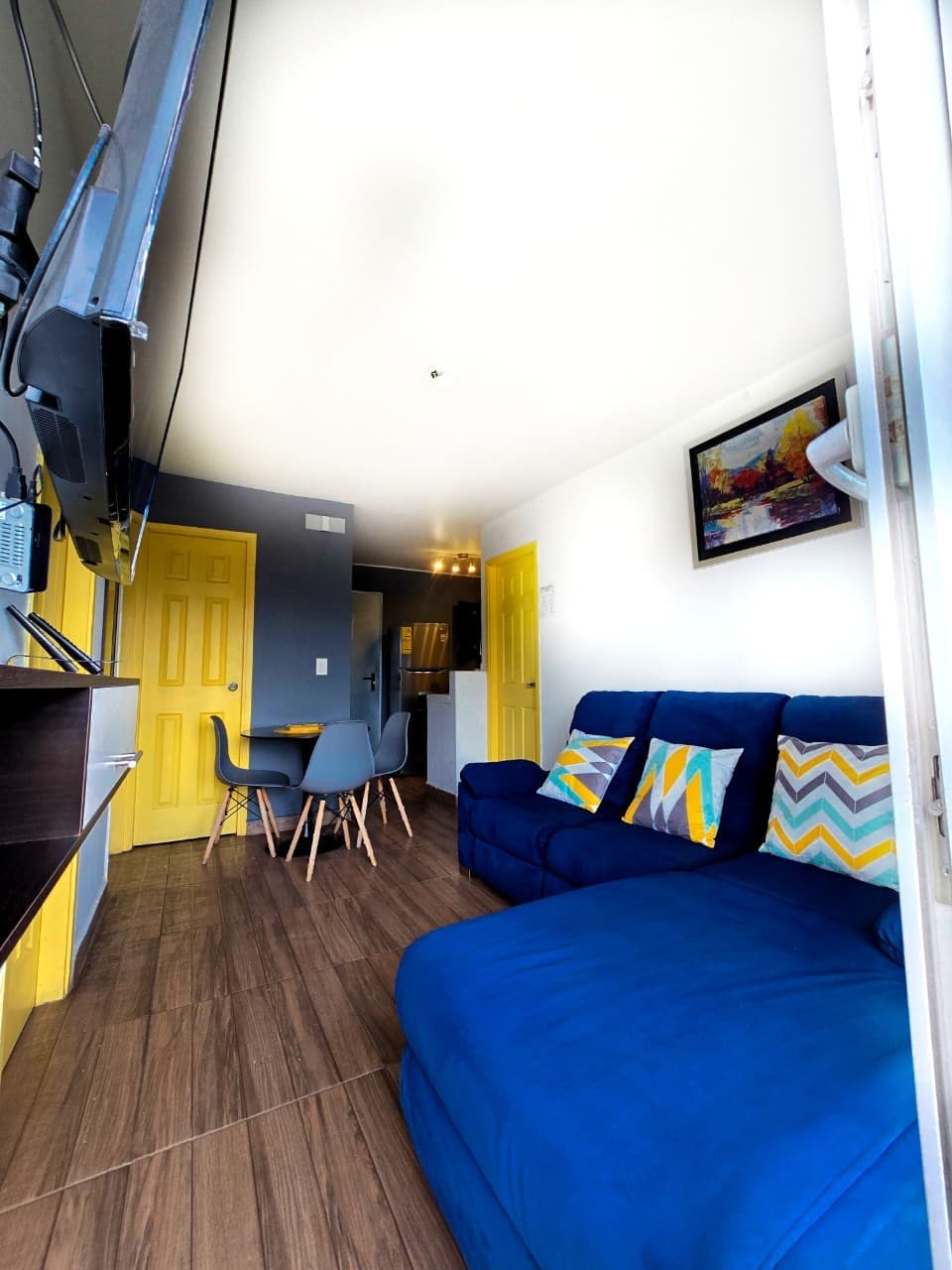 • Luxurious and secure apartment • 15 min from the U.S. Embassy • 2 bedrooms, each with a private bathroom, blackout curtains, and A/C • Fully equipped kitchen • Free washer and dryer • 3 Smart TVs with Netflix • Furnished terrace + complimentary coffee • Walking distance to Multiplaza, banks, and restaurants • Ideal for 4 guests (up to 5 with the sofa) • Pet-friendly • Pool available for stays of 10+ nights, according to the building’s internal regulations