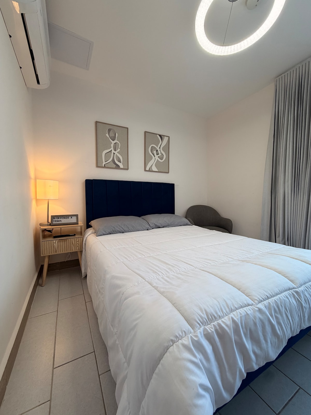 Ubicado en Tegucigalpa en una de las zonas más exclusivas y céntricas. Cuenta con todas las comodidades y con una excelente vista de toda la capital. -Aire acondicionado sala y dormitorio. -Smart Tv de 55” con sistema de teatro en casa y Netflix (Sala). -Smart Tv 42” y Netflix (Dormitorio). -Chimenea Interna. - Completamente amueblado. -Balcón con vista a la ciudad. -Gimnasio. -Area social. - Estacionamiento gratuito. **No son permitidas visitas.**