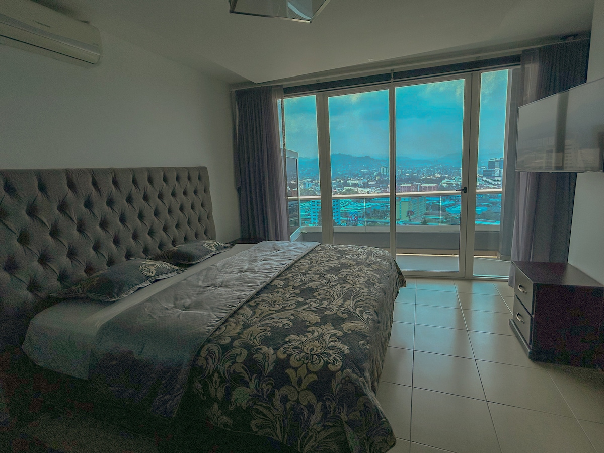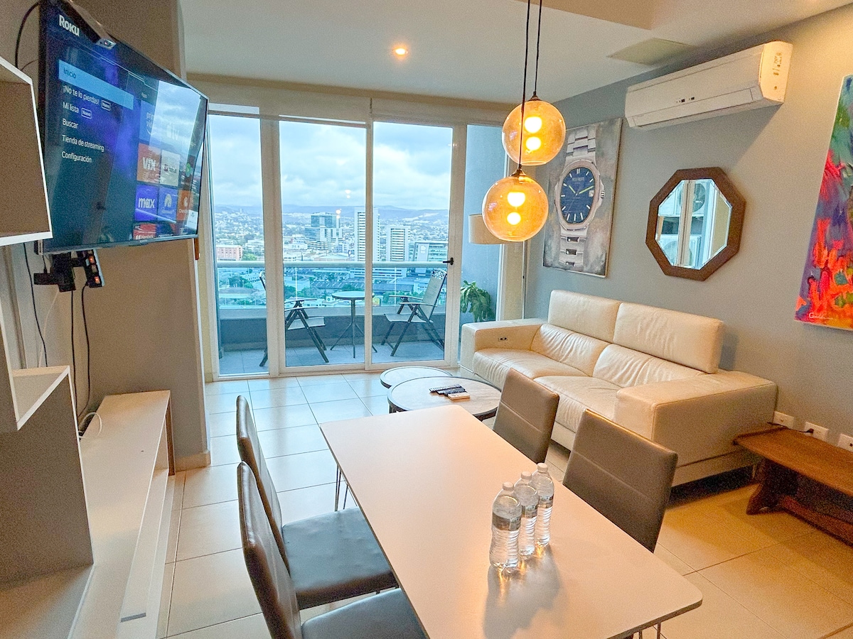 Ubicado en Tegucigalpa en una de las zonas más exclusivas y céntricas. Cuenta con todas las comodidades y con una excelente vista de toda la capital. -Aire acondicionado sala y dormitorio. -Smart Tv de 55” con sistema de teatro en casa y Netflix (Sala). -Smart Tv 42” y Netflix (Dormitorio). -Chimenea Interna. - Completamente amueblado. -Balcón con vista a la ciudad. -Gimnasio. -Area social. - Estacionamiento gratuito. **No son permitidas visitas.**
