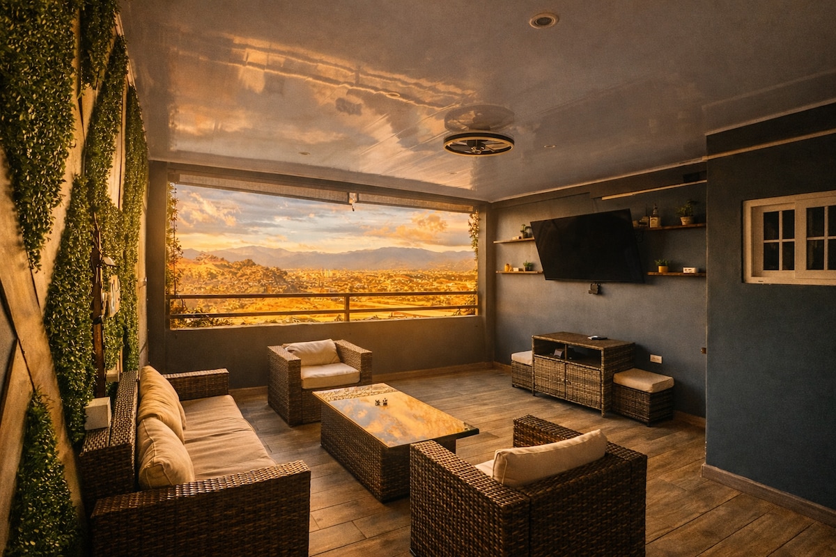Casa amplia, moderna y cómoda, ideal para reuniones tranquilas con familia y amigos, descanso y estadías largas. Disfruta de vistas panorámicas a la ciudad, espacios amplios, dos salas cómodas y cocina equipada. Cada habitación cuenta con baño privado, walk-in closet, aire acondicionado y televisión, brindando privacidad y confort. La terraza incluye TV y la segunda sala es ideal para ver películas en familia. Ubicada en zona residencial tranquila. 🔕 No se permiten fiestas ni música alta.