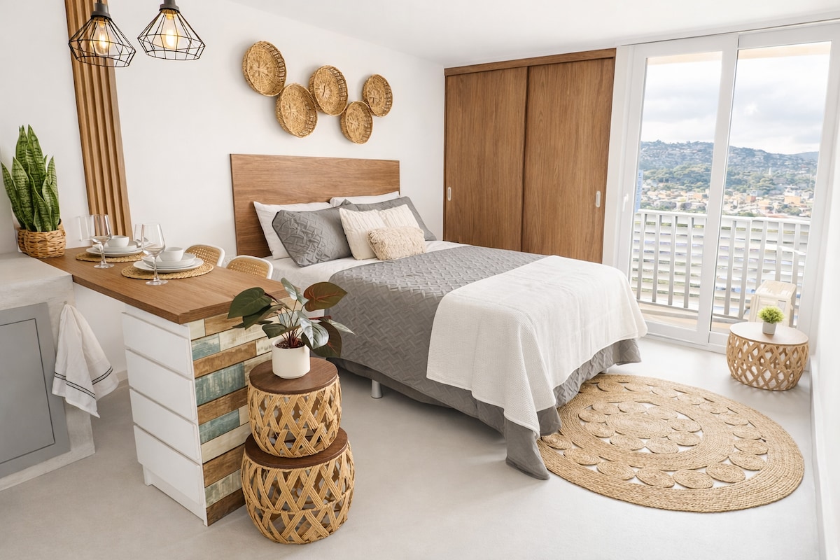 ✨ Cozy apartment with a warm, relaxing, and modern atmosphere, located in one of Tegucigalpa’s most exclusive areas. It features a comfortable bed in the bedroom and a cozy sofa bed in the living room, ideal for couples or travelers. From the balcony, enjoy a spectacular city view, perfect for morning coffee or unwinding at sunset. A space designed for comfort, tranquility, and a prime location, so you truly feel at home. 🌿🏙️