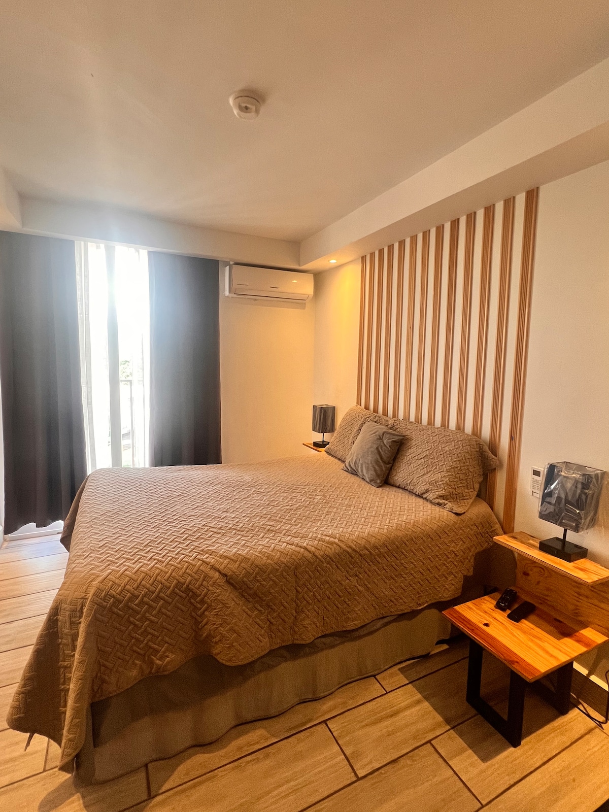 Moderno y cómodo estudio en el corazón de Tegucigalpa. Diseñado para quienes buscan una estadía práctica y segura. Disfruta de una cama matrimonial, cocina equipada, A/C, Wi-Fi, baño privado, lavadora y secadora. Nuestra ubicación privilegiada te permite acceder fácilmente a restaurantes, tiendas y puntos de interés turístico. Ideal para viajeros de negocios, parejas o aventureros que deseen explorar la ciudad.