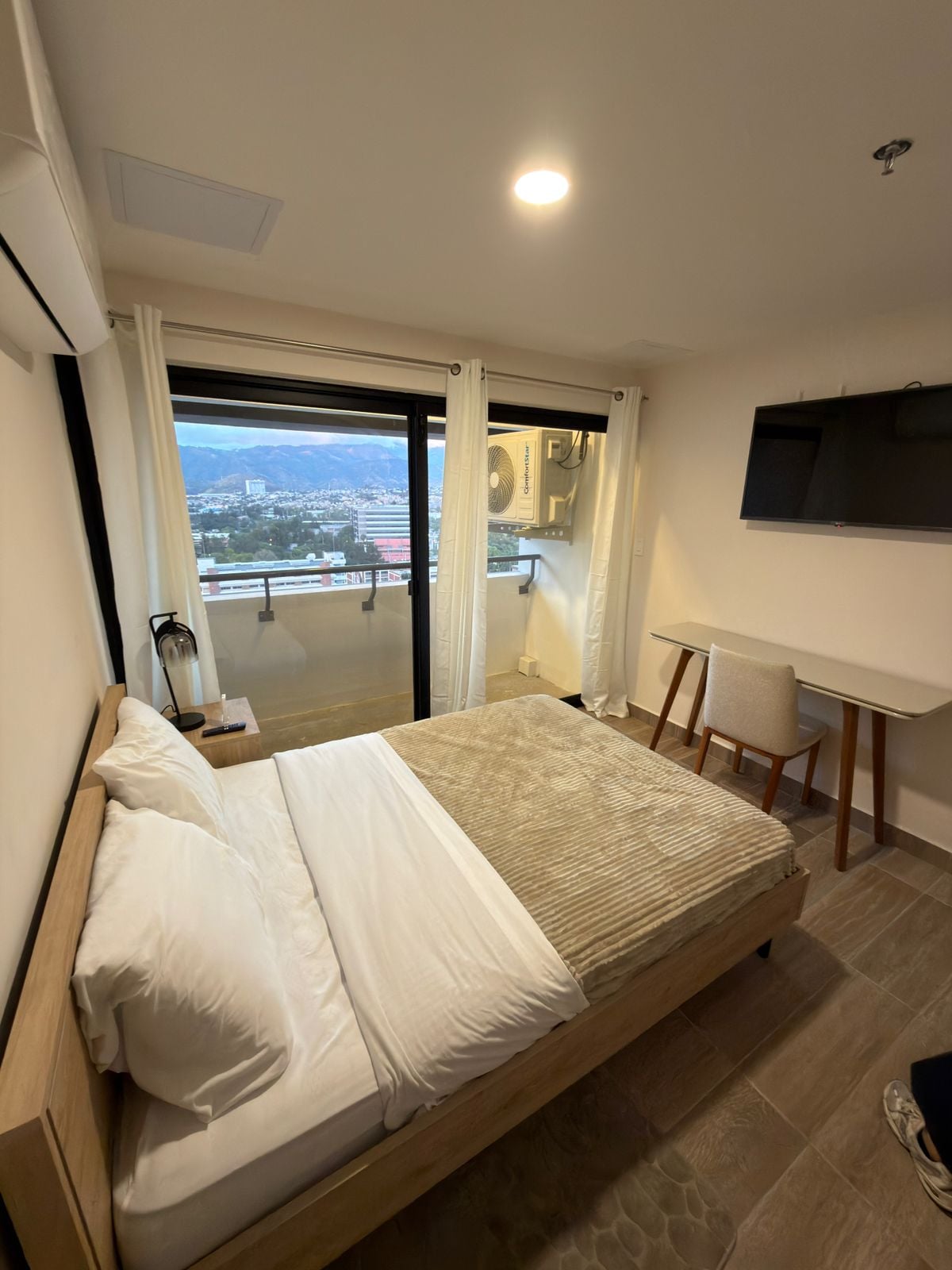 Ubicado en Tegucigalpa en una de las zonas más exclusivas y céntricas (Lomas del Guijarro). Cuenta con todas las comodidades y con una excelente vista de toda la capital. -Aire acondicionado sala y dormitorio. -Smart Tv de 55” Netflix (Sala). -Smart Tv 32” y Netflix (Dormitorio). Completamente amueblado. -Balcón con vista a la ciudad. -Gimnasio. -Area social. Estacionamiento gratuito. **No son permitidas visitas.*