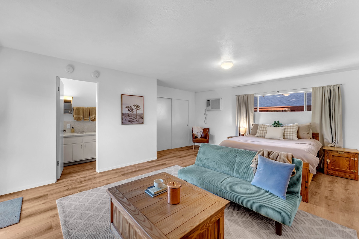 A quaint and comfortable 1-bath studio tucked away on a wide, 1950s street, our guest house has a queen bed, futon, and coffee and tea station, perfect for passing stays. With quick and easy access to I-5, Hwy 36, and Hwy 99, use it as your hub to explore Lassen Volcanic National Park, Mount Shasta, or the local charm and restaurants of Historic Downtown Red Bluff.