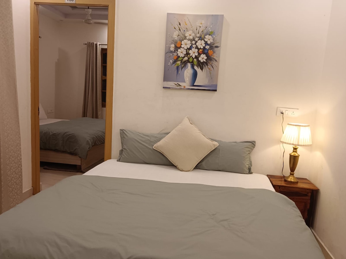 Book your stay now for a harmonious blend of comfort & serenity. A tranquil homestay just 200m away from the sacred Ganges River. The spacious hall invites you to unwind, practice yoga, or simply enjoy moments of peace with mountain views along with Ginger Tea and high-speed Internet with Netflix, Prime, Hotstar, etc on the house! and ready for Work+Vacation. Located near the City Center, AIIMS, home is a peaceful sanctuary for your stay in this spiritual city. This is your place to BOOK NOW!