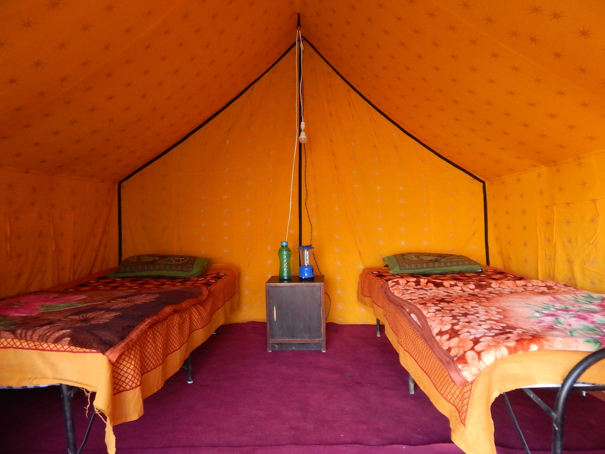 Camp site developed in 2 acres of land offering great place for nature lovers -Suited for off-roaders & adventure seekers as terrain test driving skills. People who are well versed in hilly area & offbeat terrains should opt for this -Away from city & peaceful for travelers looking for tranquility and solidarity. -Mobile networks- BSNL & Rel - No power backup -Sunrise and sunsets are beautiful -comfortable stay in dome tents with mattress & sleeping bags on twin sharing