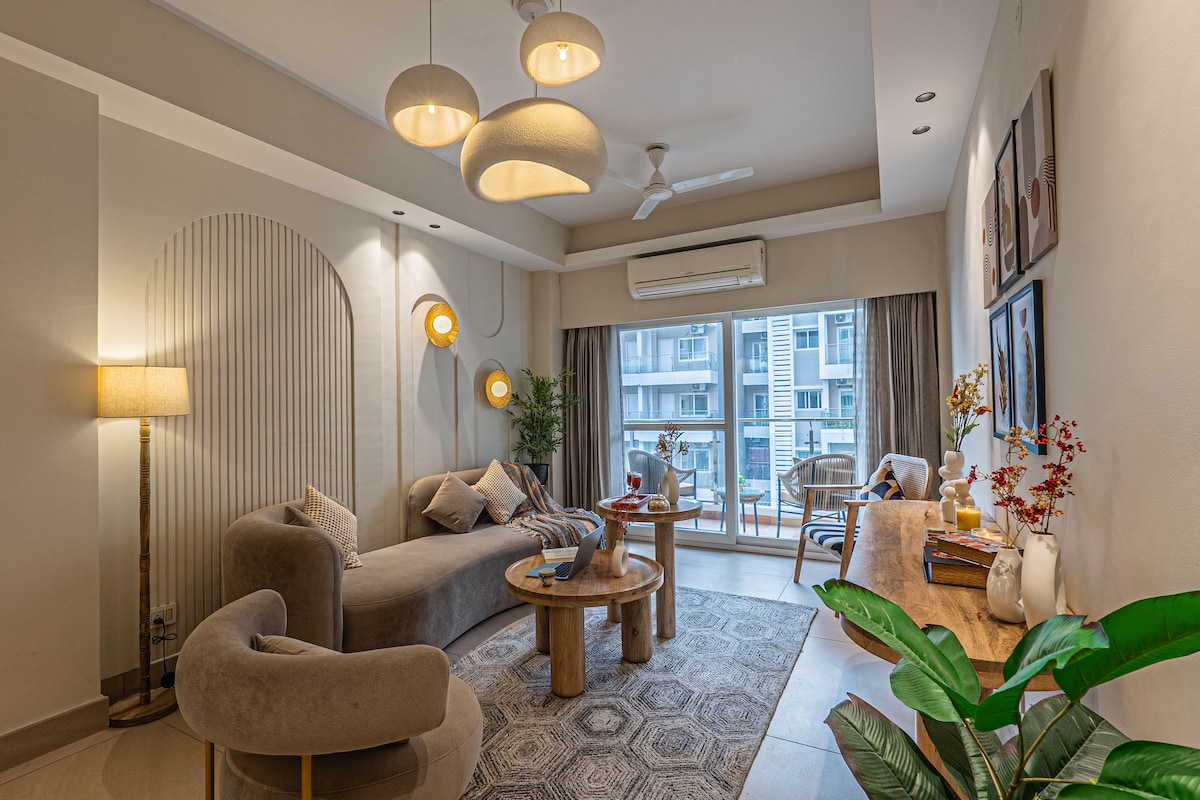 This Dehradun Mussorie home offers quiet premium and everyday comfort. A 2BHK concept with Dehradun-Mussorie valley view, kept it for Workation ready with mountain and Doon-valley view. Suggested stay in Dehradun-Mussorie Premium & thoughtfully curated furnishing layout create a space that feels both refined and welcoming. We dressed up this home in trendy way, ideal for guests who value privacy, comfort, simplicity and perfection. Designed in warm beige tones with a calm, minimal aesthetic.