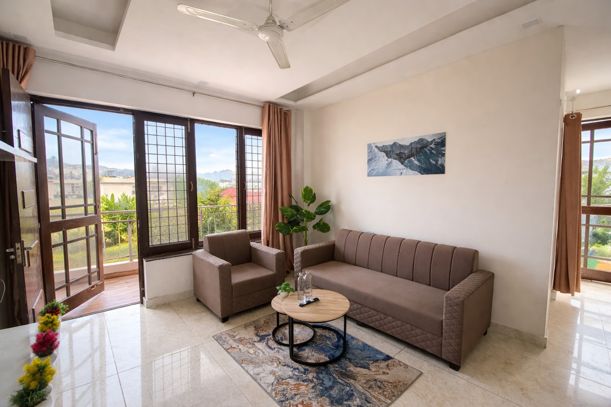 Welcome to Melody by AariaHomez a stunning family friendly luxury apartment nestled in the heart of the mountains, perfect for a romantic getaway or solo adventure. The apartment is just 10 minutes from Pacific mall Rajpur road & 60 minutes from the queen of hills Mussorie. - Comfortable King size bed with premium linens - Offer a kitchenette for your cooking needs - Modern bathroom with essentials provided. - Private balcony to enjoy your morning coffee - Smart TV and High Speed Wi-Fi