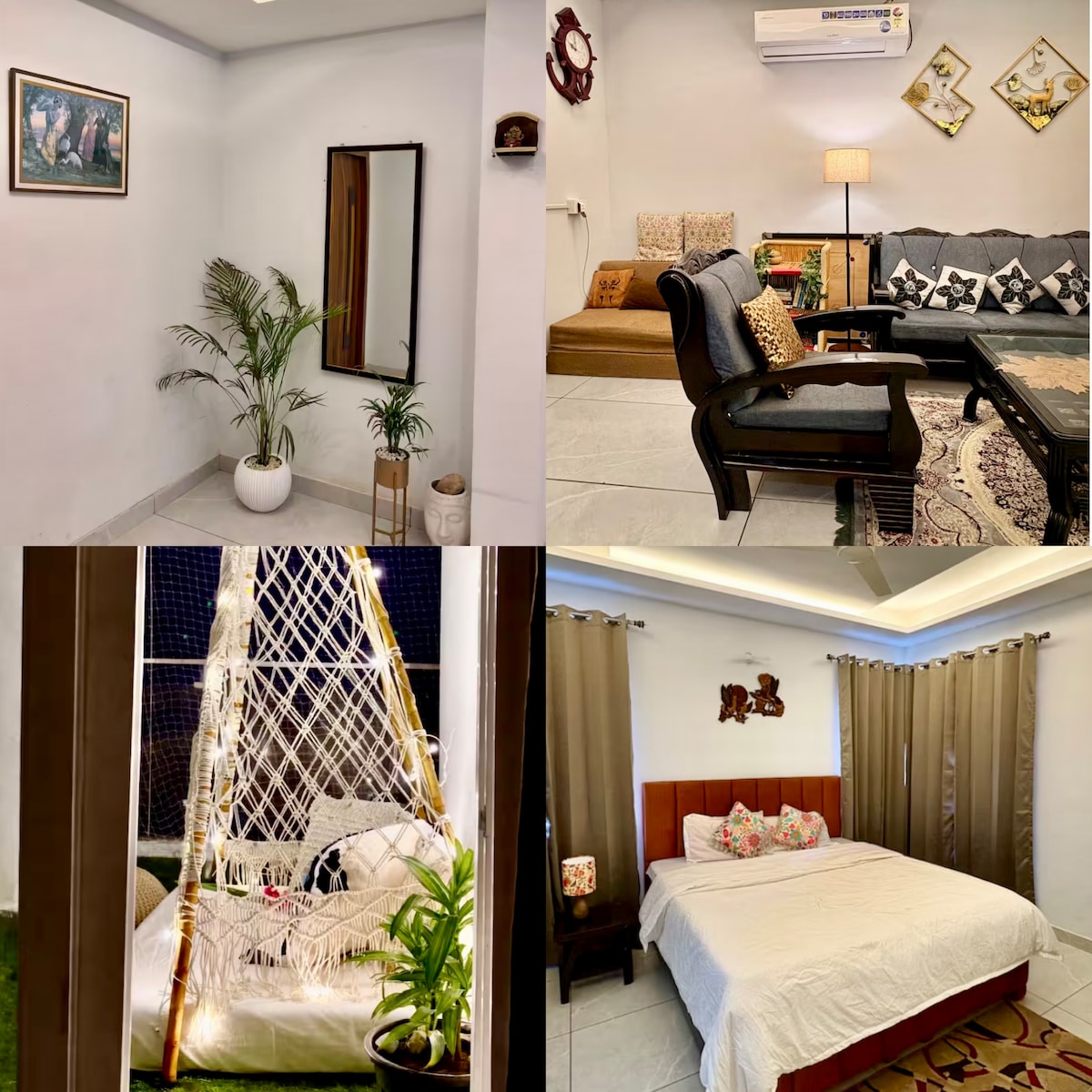 Your trusted Wabi Sabi has brought: A serene 3BHK retreat designed for those who crave a raw, authentic connection with nature. From the rear side, lush greenery and soft forest backdrops create a calming view. Guests can cook their own meals in the functional kitchen, share laughter in the living area, or simply retreat into silence with a book and a cup of tea. ❌ Only Boys Group ❌ Music beyond 10 PM ❌ Saturday Parties (we are open for mindful get togethers)