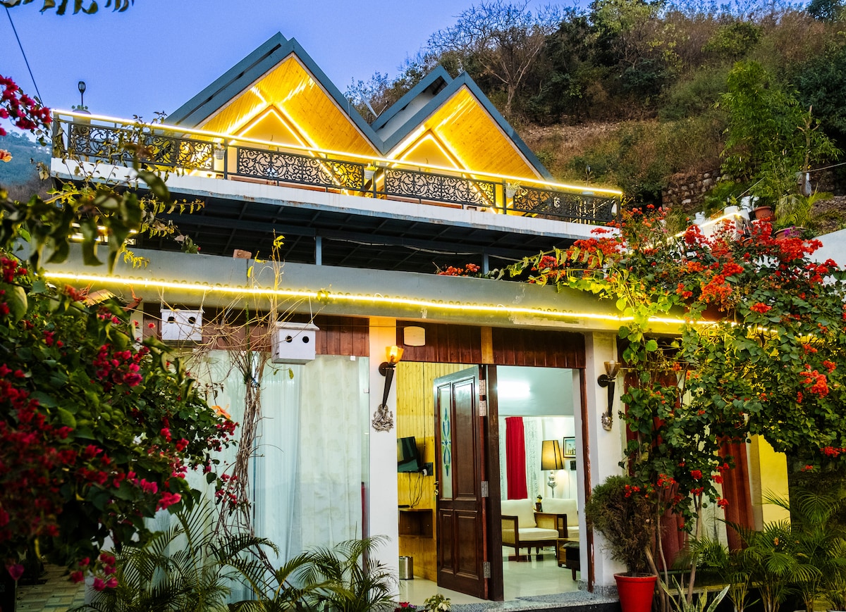 “Live close to nature and you’ll never feel lonely. Don’t drive those sparrows out of your verandah; They won’t hack into your computer” - Ruskin Bond Pillowed in Garhwal region of Uttarakhand, Peacefully cradled in the Dehradun Valley & Nestled in the foothills of Mussoorie Pet friendly Luxury Villa with BBQ and Bonfire in sprawling lawn. Distant enough to escape the bustle of the city without being too far away. Overlooks Tons River & offers Panaromic view of Mussoorie
