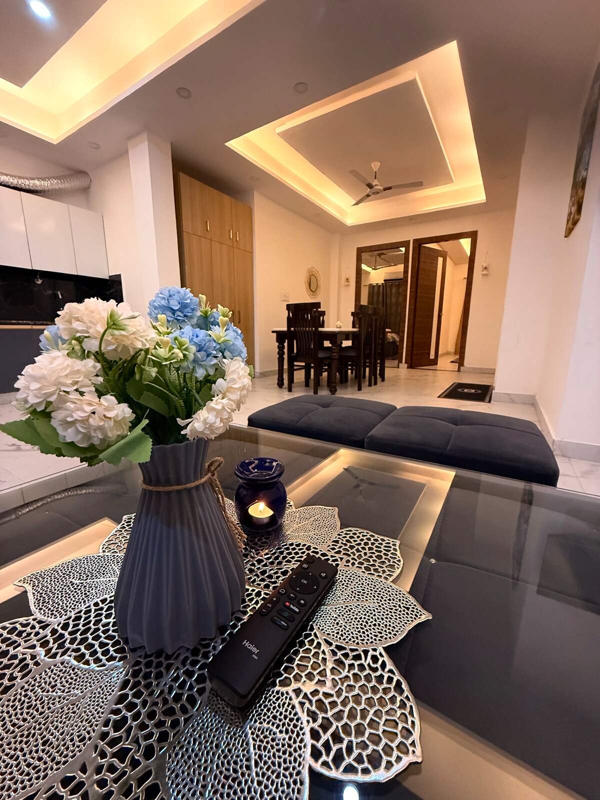 Maitri (मैत्री) represents friendship, comfort, and a sense of ease. • Located in a calm yet central part of the city, this thoughtfully planned studio is bright, clean, and comfortable. • Large windows bring in natural light, and the simple, uncluttered design keeps the space relaxed. • Ideal for couples, solo travellers, or work stays, it offers privacy and quiet without feeling cut off. Maitri is meant for slowing down, settling in, and enjoying a peaceful stay in the city.