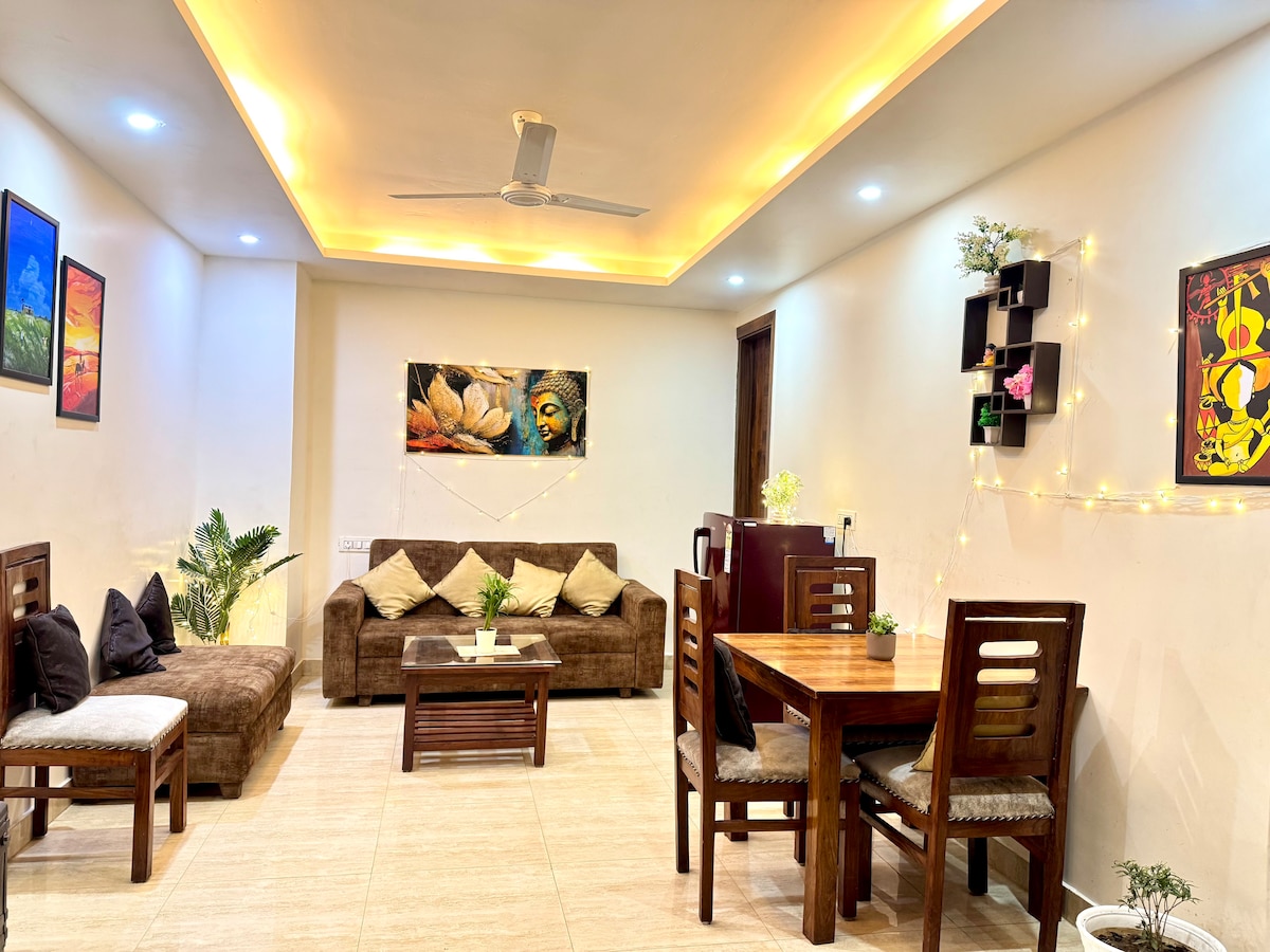 Book your stay now for a harmonious blend of comfort & serenity. A tranquil homestay just 200m away from the sacred Ganges River. The spacious hall invites you to unwind, practice yoga, or simply enjoy moments of peace with mountain views along with Ginger Tea and high-speed Internet with Netflix, Prime, Hotstar, etc on the house! and ready for Work+Vacation. Located near the City Center, AIIMS, home is a peaceful sanctuary for your stay in this spiritual city. This is your place to BOOK NOW!